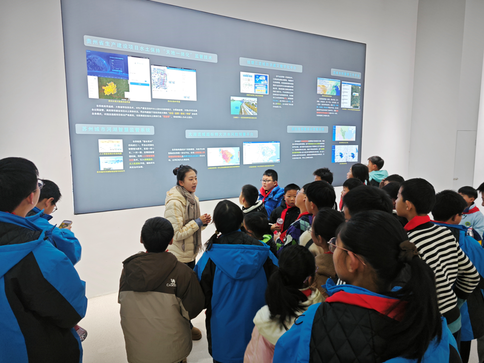 参观旅程的第一站,孩子们来到了郑蒲港校区水情科普教育基地,讲解员们认真向他们讲解了什么是水情、我们国家有哪些大江大河等等知识内容。在三大流域沙盘面前,讲解员为孩子们生动形象介绍了长江、黄河的由来以及历史上的各种有趣故事、名胜古迹。孩子们纷纷围在讲解员的身边,提出各种各样的问题,清澈的眼神中充满了对未知领域的渴望。而后在讲解员的带领下,孩子们依次有秩序地参观了校区图书馆和毛主席像,沿途欣赏了郑蒲港校区各地风景。