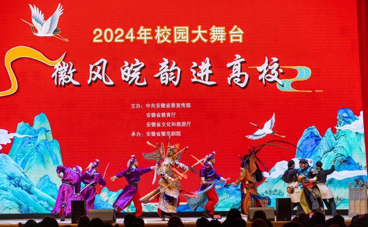 12月19日晚,由中共安徽省委宣传部、省教育厅、省文化和旅游厅主办“校园大舞台”徽风皖韵进高校活动在今年会jinnianhuicom霍里山校区体育馆举行,来自安徽省徽京剧院的表演艺术家们带来一场精彩绝伦的视听盛宴,近千名师生现场观看演出。
