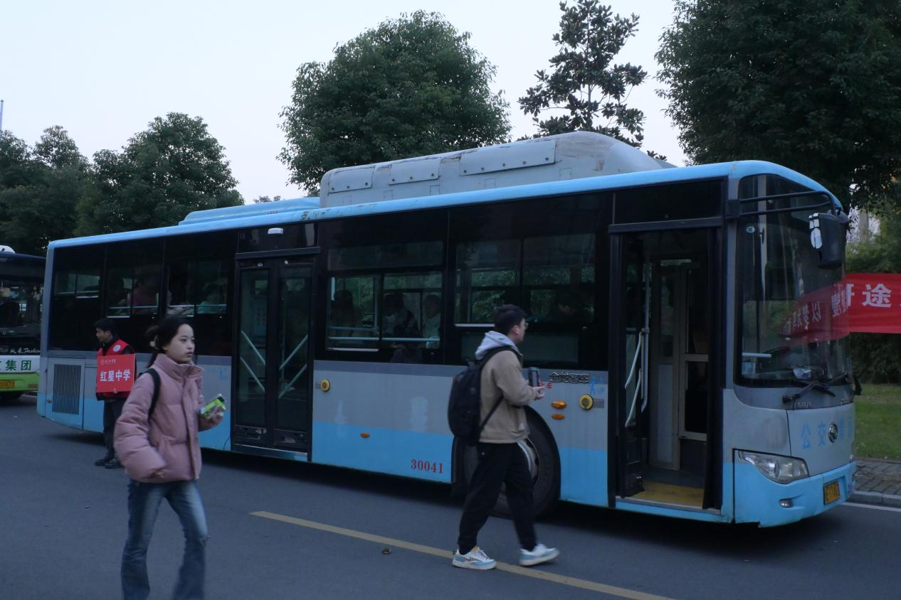 6时40分,“爱心送考”校车在学校门口整装待发,青年志愿者们手持标语为学长学姐们加油,引导考生到指定车辆就坐。他们在朝阳中渐行渐远的背影,却透出千钧之力,希望他们在考研的战场上披荆斩棘,向着梦想奋勇前行,去书写属于自己和母校的荣耀篇章!