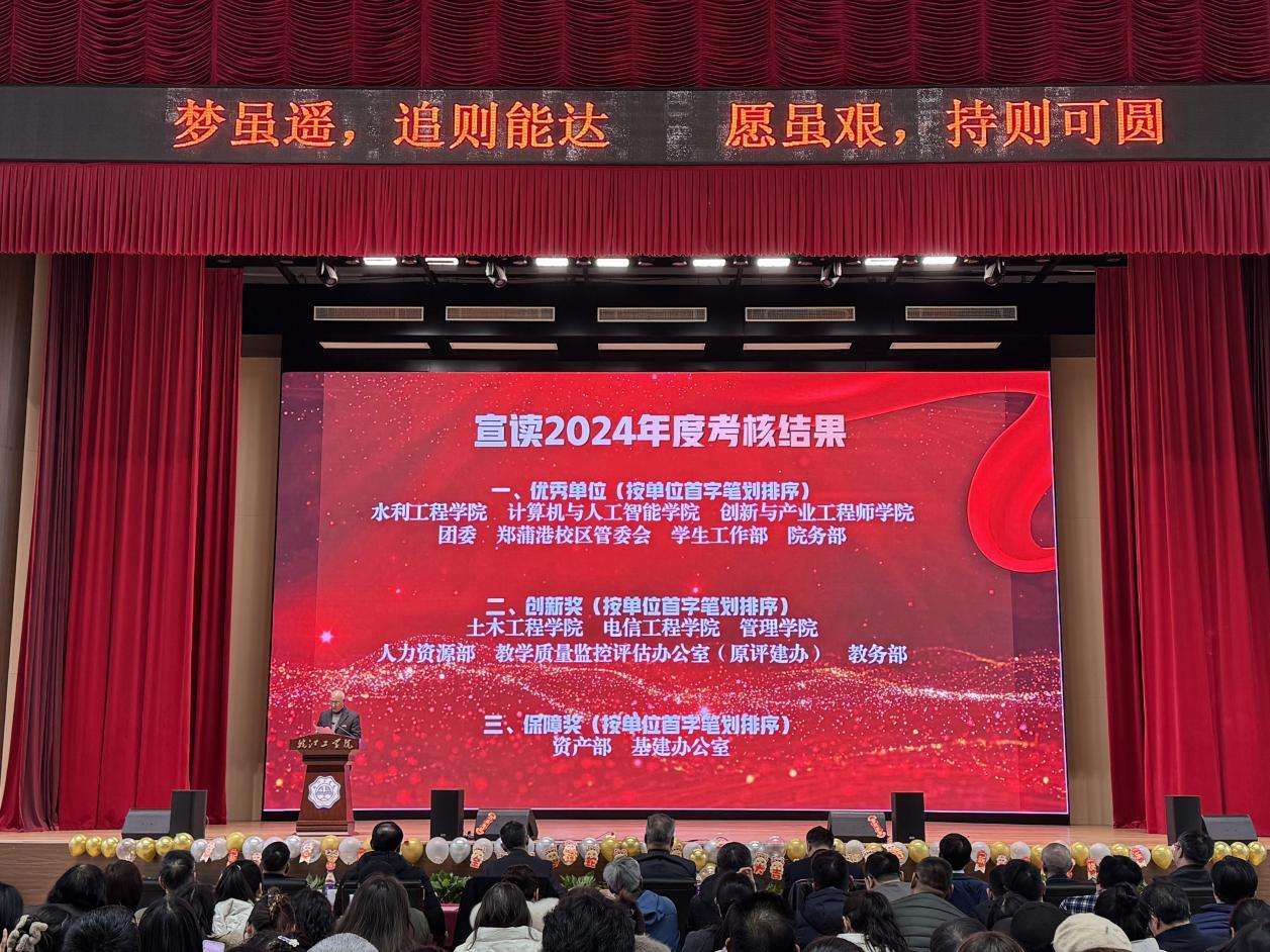 首先由党委副书记、校长吴继敏作2024年度工作总结,他从党建与思想政治、本科教学合格评估、教育教学工作、科研与平台建设、人事与人才工作、学生管理与招生就业工作、发展规划与产业服务工作、保障服务和资产管理工作等八个方面、47项重要工作总结回顾了学校2024年度工作特色与亮点,在充分肯定了2024年度所取得成果,同时提出了2025年初步工作思路,希望全体教职工齐心协力,始终坚持以习近平新时代中国特色社会主义思想为指导,深入贯彻党的二十大和二十届三中全会精神;立足新发展阶段、贯彻新发展理念、构建新发展格局,加强科学谋划,深化改革创新,稳步推动学校教育事业高质量发展。