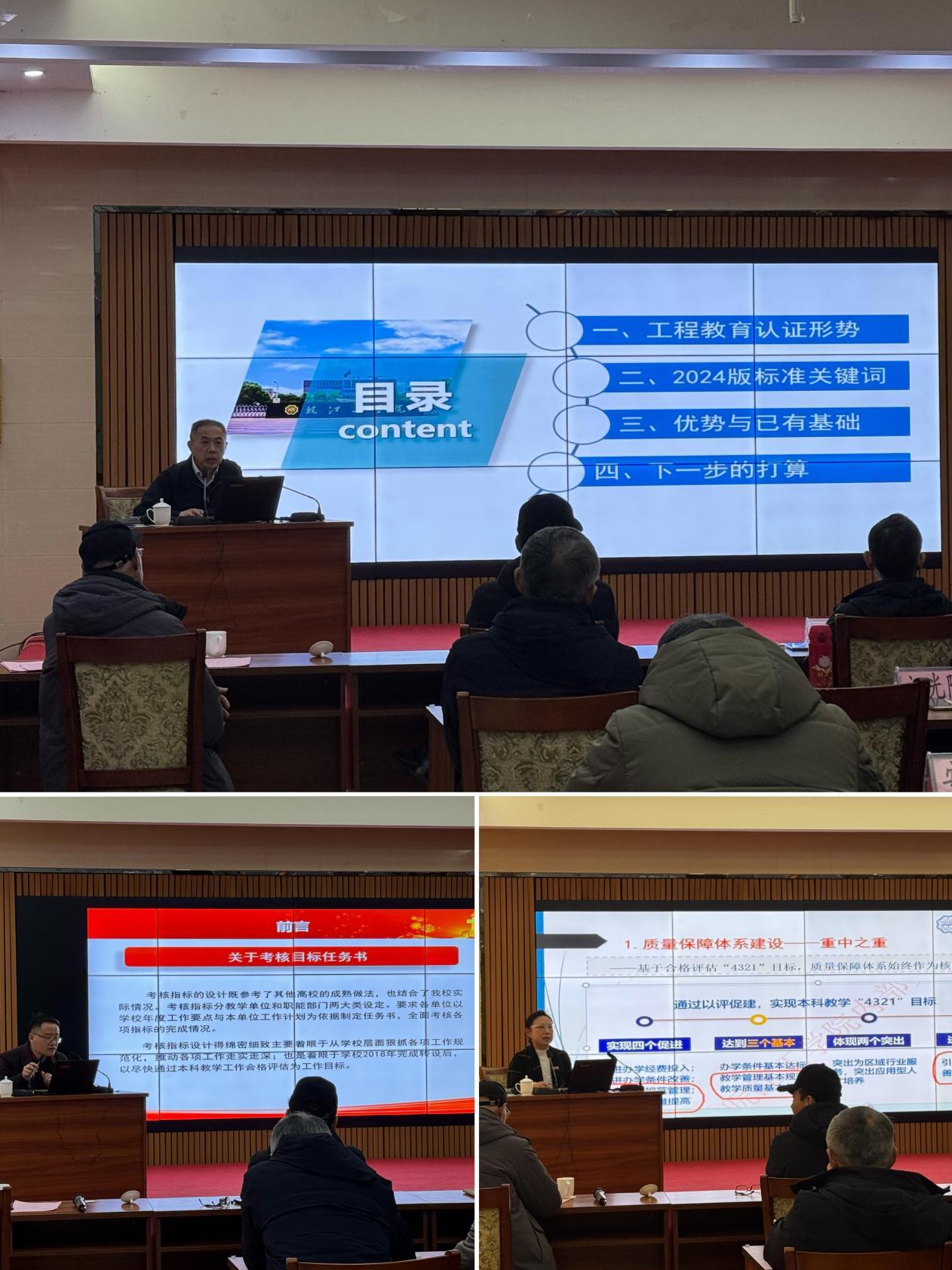 水利工程学院院长胡明、教务部部长江冰、发展规划部副部长周冠文分别就工程教育专业认证、教学运行与质量保障体系、2025年目标任务书制定等作了专题汇报,对下一步工作提出了前瞻性建议。