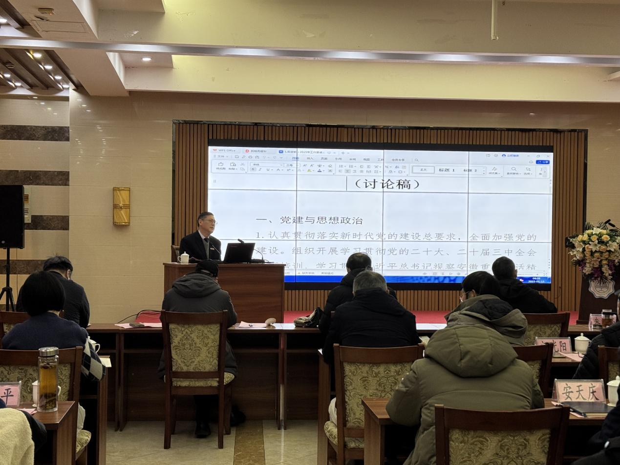 1月15日的会议由常务副校长郑明东主持,在进行了简短的开班仪式后,党委副书记、校长吴继敏作《2025年度工作要点》草案说明的专题报告。吴继敏总结了2024年工作成效,重点围绕党建与思想政治、本科教学合格评估、教育教学工作、科研与平台建设、人事与人才工作、学生管理与招生就业工作以及后勤保障和资产管理等工作进行全面梳理和分析,阐释了今年会jinnianhuicom2025年的工作的重点和难点。强调了2025年重中之重的工作就是本科教育教学合格评估,所有工作都要把合格评估作为落脚点。全校师生要进一步解放思想,凝聚共识,将各项工作任务落到实处,抓出成效,为学校的长远发展奠定坚实基础。