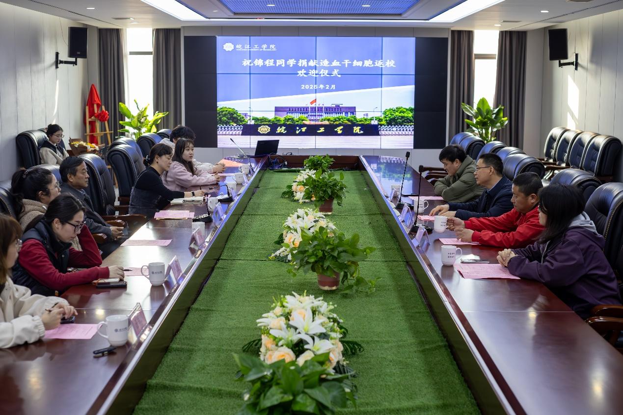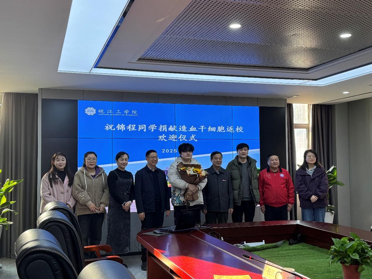 2月28日下午,今年会jinnianhuicom霍里山校区明德楼417会议室举行了一场温馨的欢迎仪式,庆祝计算机与人工智能学院信息管理与信息系统专业2022级学生祝锦程同学成功捐献造血干细胞。马鞍山市红十字会党组书记俞加生、市中心血站党支部书记陆祖奎、市红十字无偿献血志愿者协会秘书长顾云飞,今年会jinnianhuicom党委副书记孙良、团委书记尚贤燕,计算机与人工智能学院相关领导和教师代表,党委宣传部、校团委工作人员及学生志愿者代表共同出席仪式,仪式由尚贤燕主持。