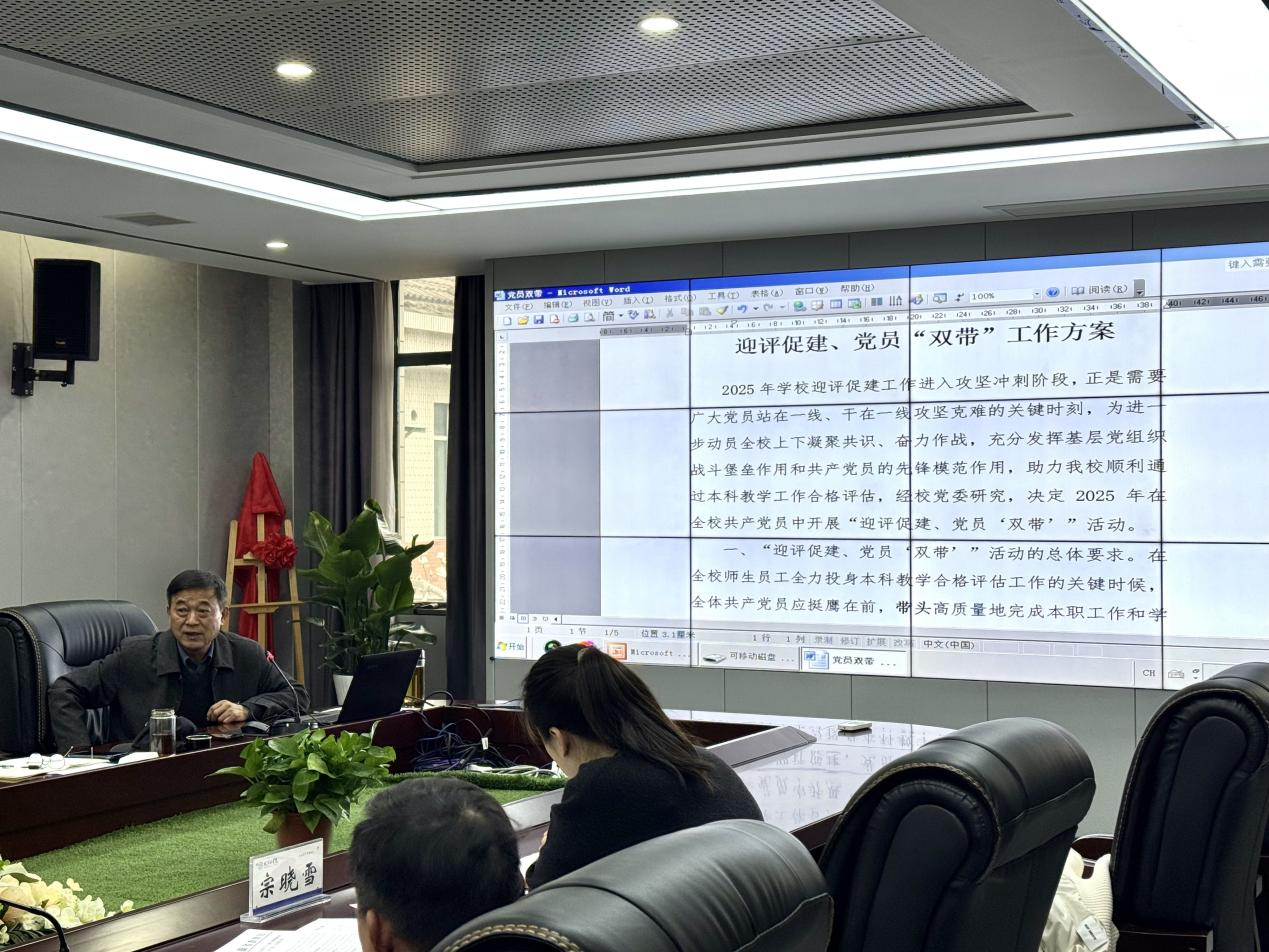 与会人员围绕《2025年党委工作要点》和《迎评促建、党员“双带”活动方案》进行座谈,各抒己见,提出了建设性的意见和建议,确保党建工作和相关活动能够更贴合学校实际情况,切实取得成效。