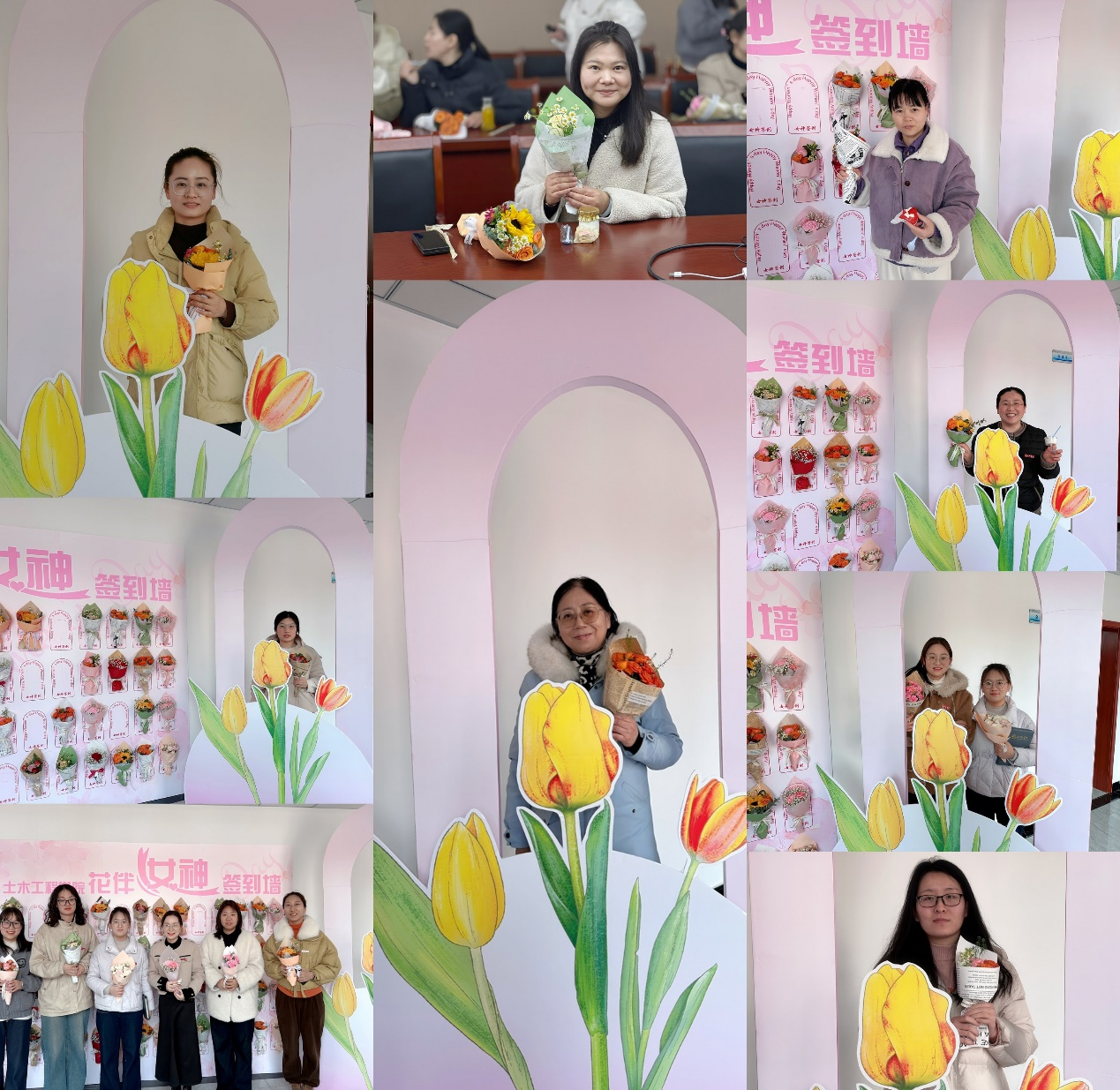 土木工程学院举办“巾帼建功”主题活动,通过观看苏东林院士宣讲视频、优秀教师经验分享会等形式,激励女教职工在教育教学中贡献智慧力量。定制花束与立体签到墙成为热门打卡点,展现新时代女性的独特风采。