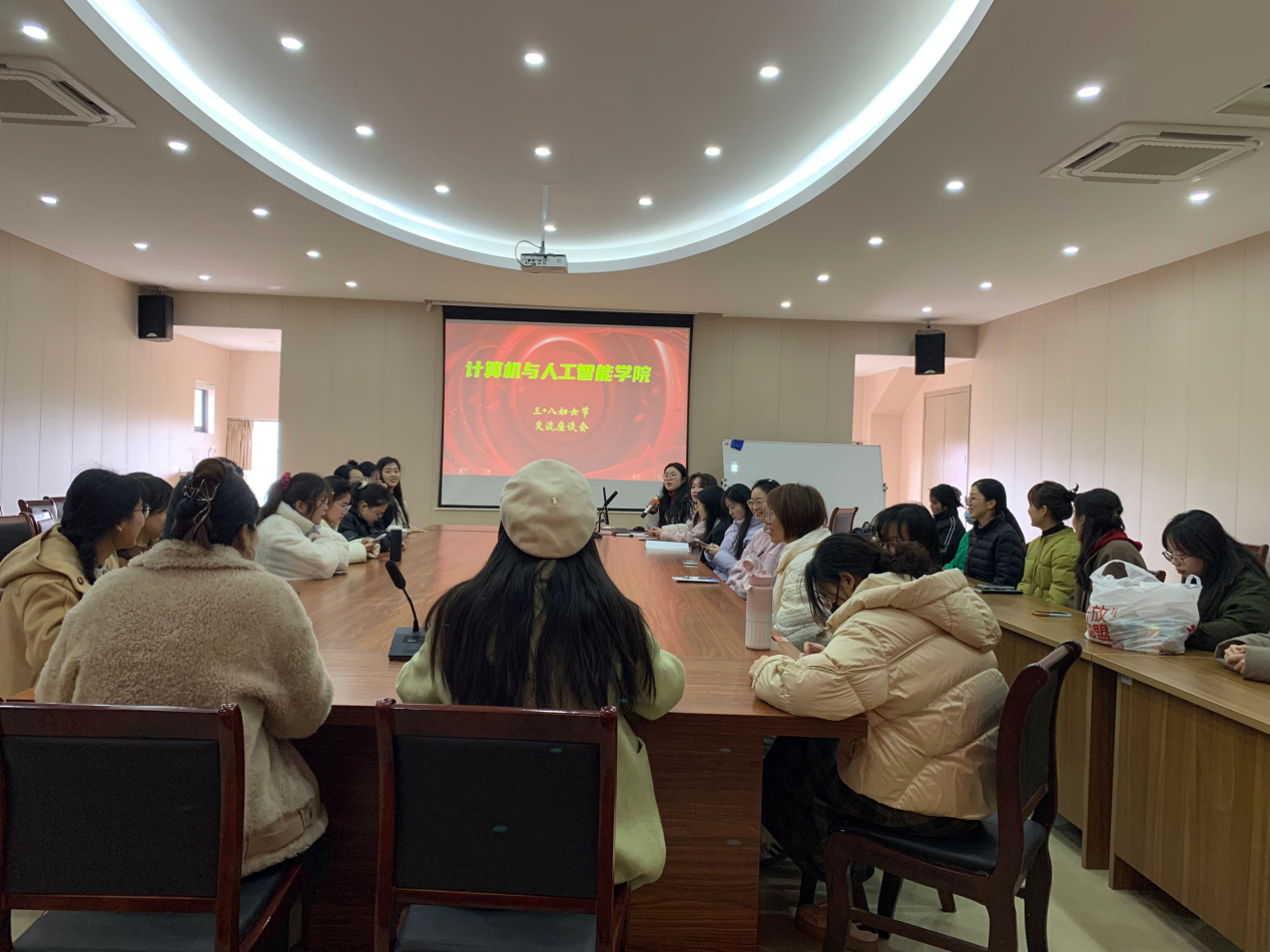 3月8日计算机与人工智能学院全体女教师齐聚“凝聚‘她力量’,奋进新征程”主题座谈会,共庆第115个国际妇女节。活动通过观看“十大教书育人楷模”女教师事迹纪录片,银龄教师常桂兰分享从教感悟,女教师们以“AI 时代女性职业发展”“教学与科研平衡之道”等话题深入座谈交流,充分展现女性教育者的坚韧与智慧。信管教研室徐霞老师即兴献唱,婉转歌喉赢得阵阵掌声,将活动推向高潮。学院党总支副书记韦晨珺娃在总结中强调:“女性教师是学院发展不可或缺的重要力量。”座谈会后,每位女教师收到精心准备的节日礼包,让这份春日祝福传递温暖与关怀。