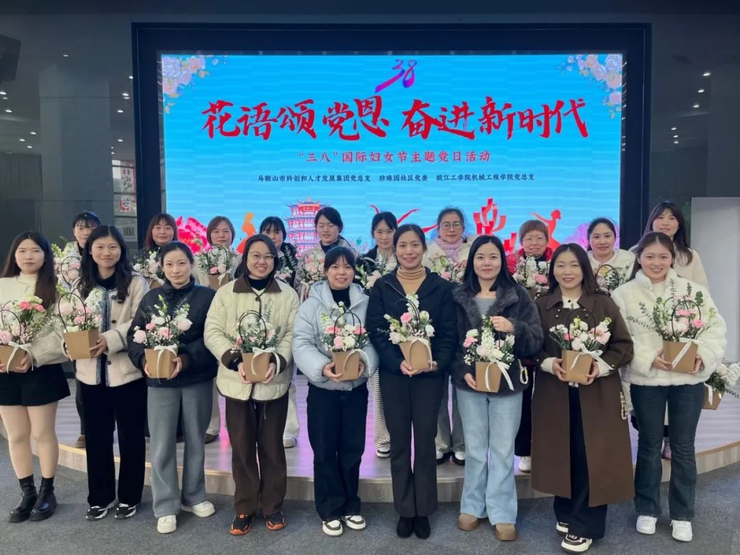3月6日机械工程学院联合市科创集团、珍珠园社区开展“党建联建+花艺美学”主题活动。三方签订支部共建协议,将在人才培养、社区服务等领域深化合作。活动现场,专业花艺师指导女性党员们完成创意插花作品,在花香中感悟初心使命,用艺术表达爱党情怀。