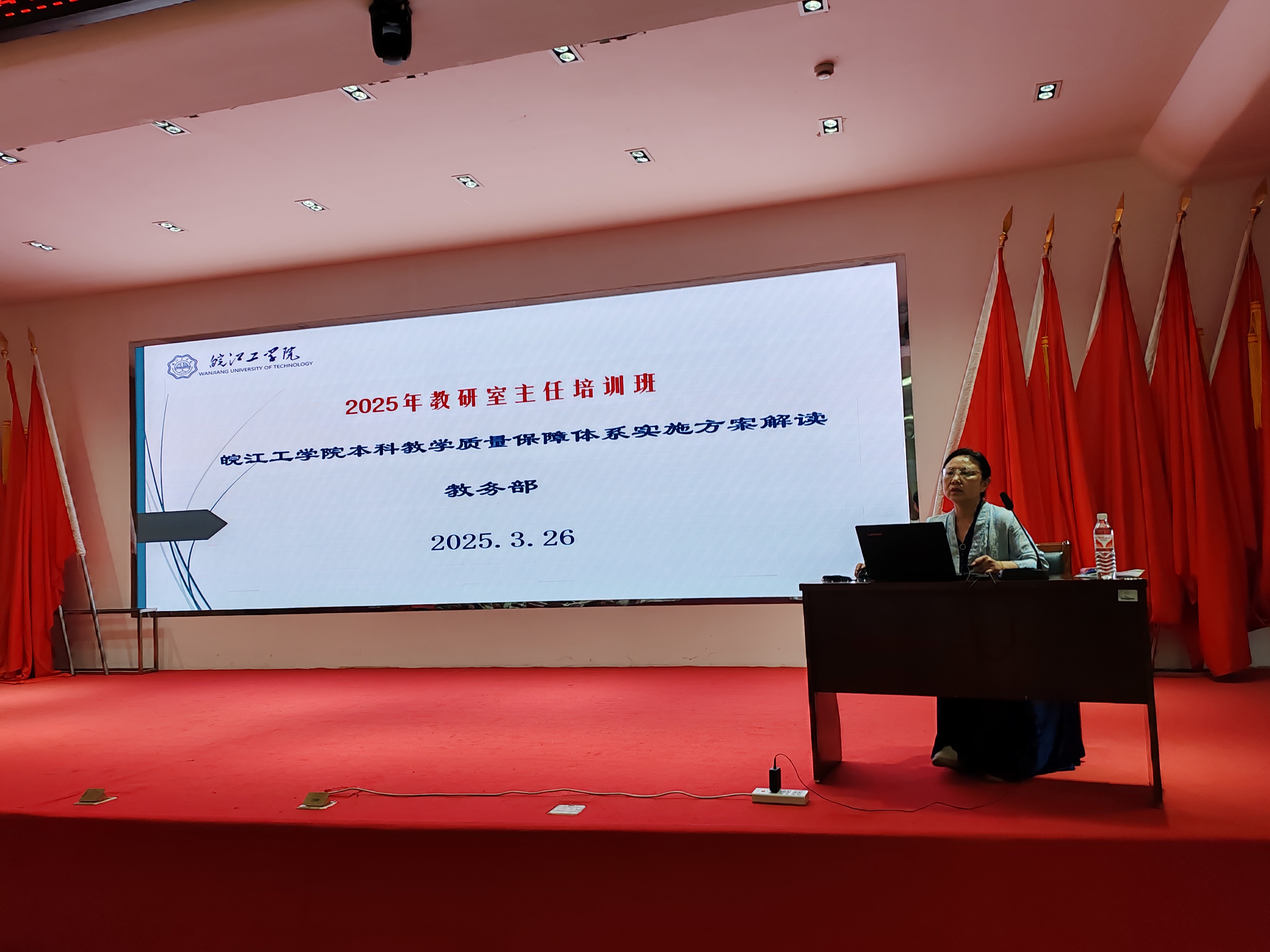 为进一步贯彻落实学校本科教学质量保障体系,深入理解本科教学合格评估的指标体系及迎评工作流程,学校于3月26日下午在图书馆报告厅组织召开2025年教研室主任培训会议。质控办、教务部相关人员,各二级学院院长、教研室主任、教学办主任等教学管理人员参加会议,教务部部长江冰、质控办常务副部长黄翠分别作主题报告。会议由副校长阮怀宁主持。