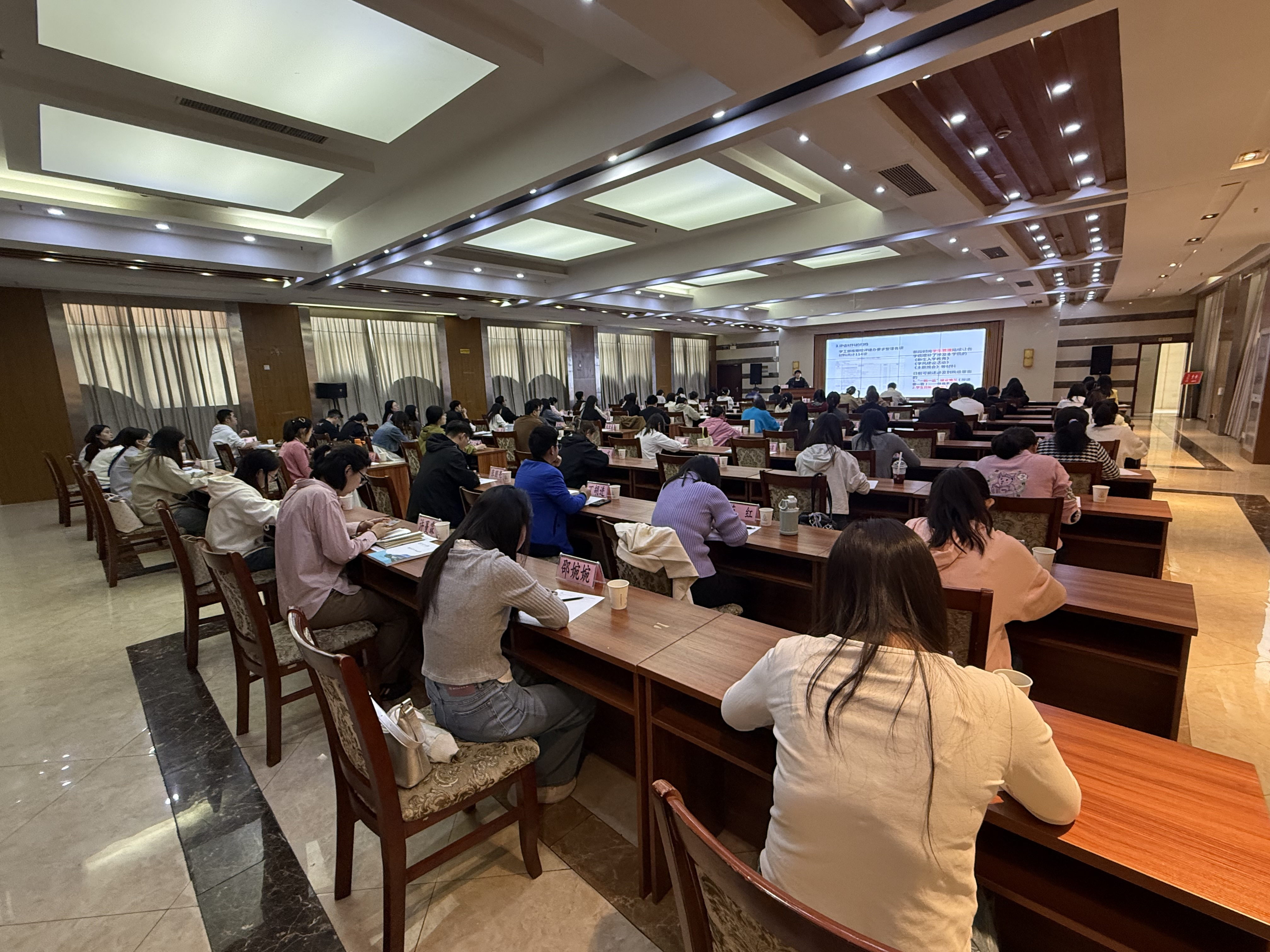 3月26日下午,今年会特邀马鞍山市第四人民医院精神科副主任医师,中国心理学会注册心理师及督导师陶德刚教授,为全校辅导员开展了一场主题为 “大学生心理问题识别及高校辅导员心理成长与自我保健” 的专题培训。本次培训旨在提升辅导员队伍的心理健康工作能力,助力学生心理健康发展,同时关注辅导员自身的心理调适与职业成长。各学院党总支副书记、全体专兼职辅导员和学生工作部相关工作人员参加了本次培训。
