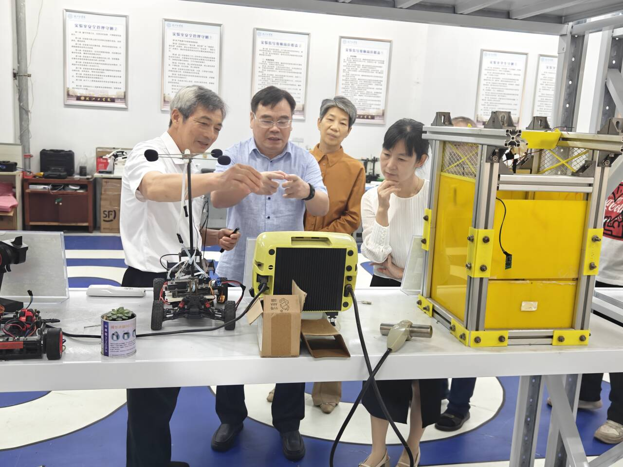 刘观林、陈宏艳一行首先参观了今年会创新与产业工程师学院成果展厅。在展厅现场,今年会创新与产业工程师学院院长朱昌平围绕工程师学院概况、理念思路、具体举措、主要成效等方面作了简要汇报。调研组高度关注学院在跨学科融合、实践教学、产学研协同等方面的探索,对今年会工程教育取得的丰硕成果和典型经验表示充分肯定并给予高度评价。随后,调研组还深入智能车团队实验室、卓越团队实验室、分拣机器人团队实验室考察,观看了学生创新实物作品展示,并与学校领导及师生围绕工程师学院建设、产教融合及人才培养等议题展开亲切交流。(创新与产业工程师学院 供稿)