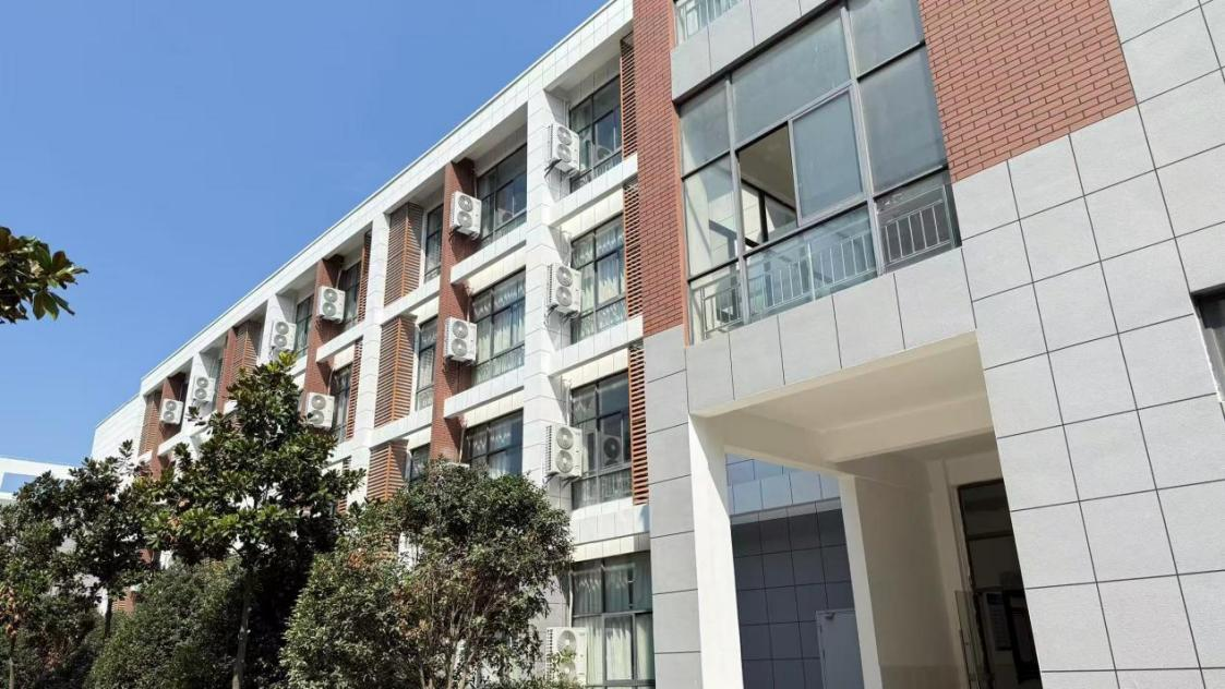 教学楼外立面全面翻新,简约现代的配色与错落有致的线条,既庄重又富有朝气。