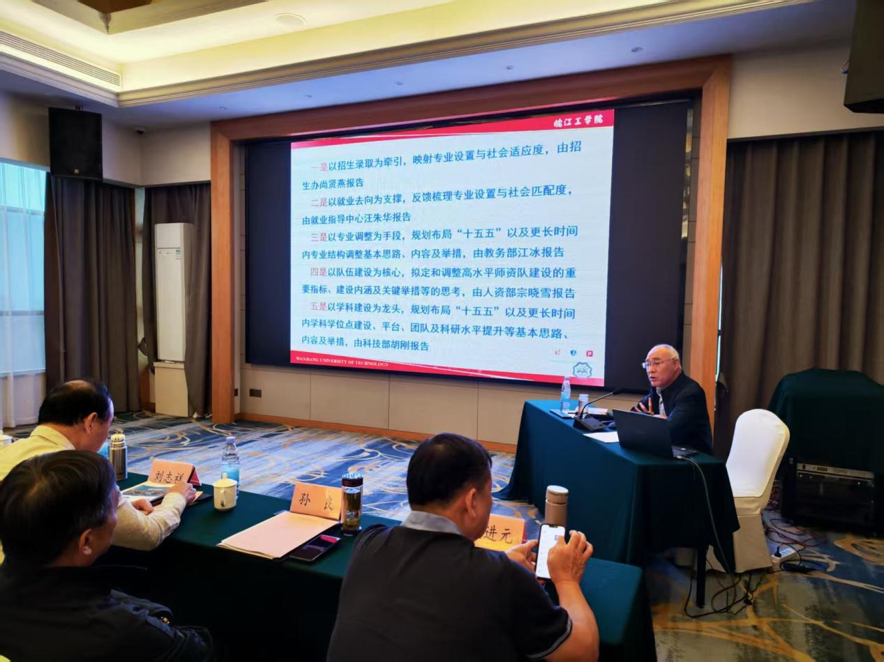 10月19日会议进入总结阶段,副校长阮怀宁主持总结会,党委书记丁家云、董事长朱洪高作了总结讲话。