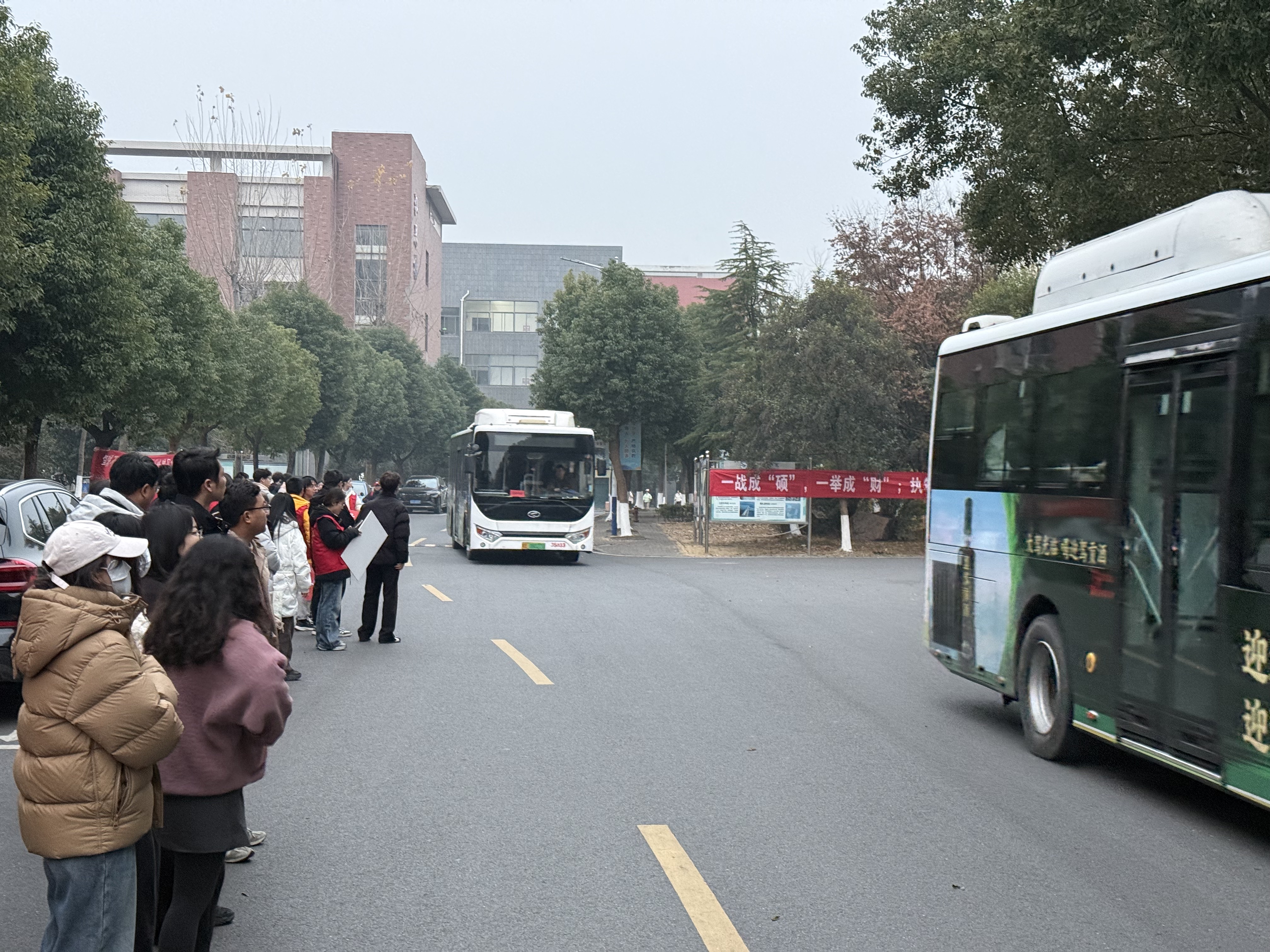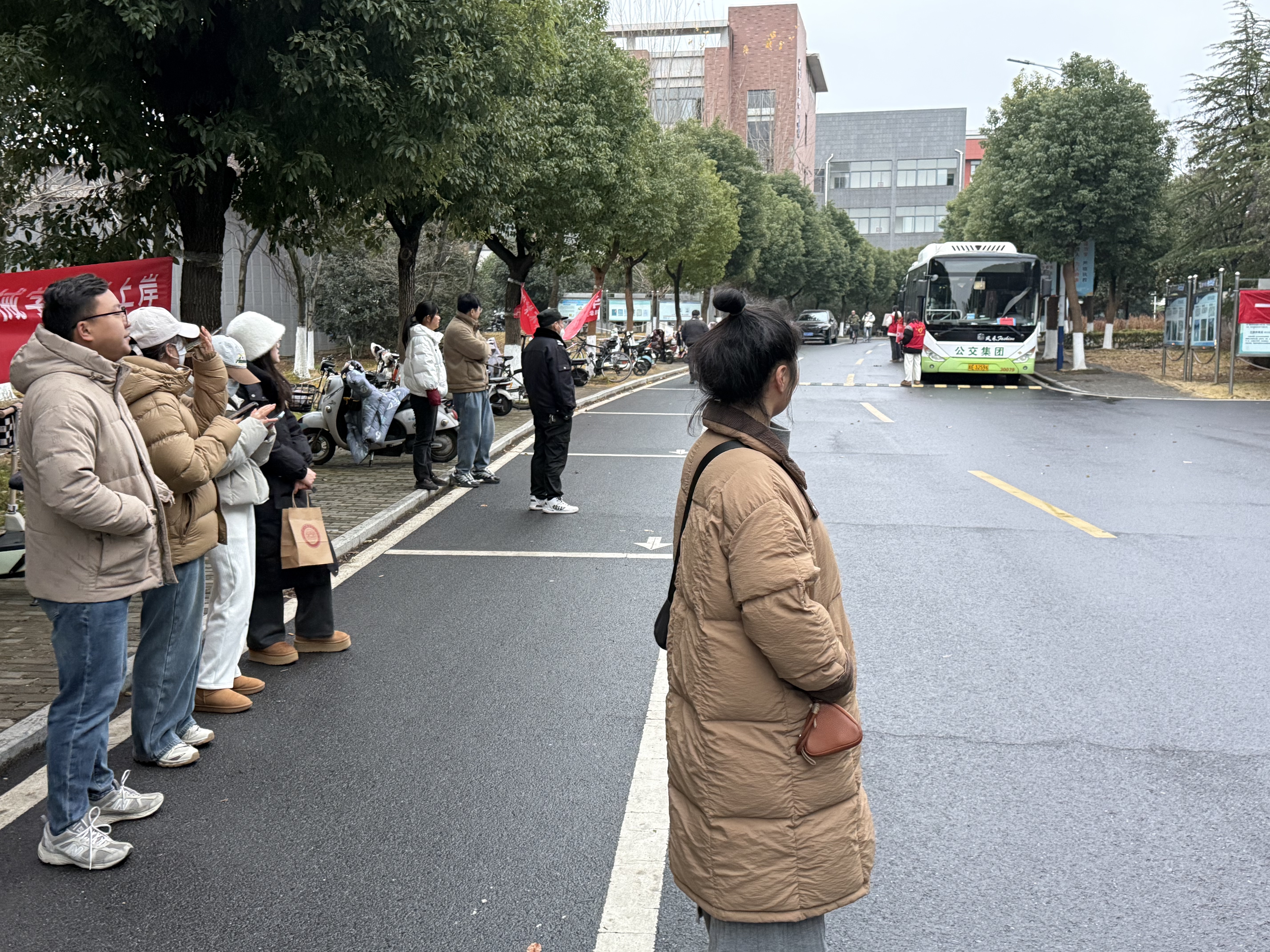6时40分左右,“爱心送考”校车在校区门口整齐列队、整装待发。志愿者们为学长学姐们呐喊鼓劲,同时细心引导考生有序登车、核对物品。随着车辆缓缓驶离,学子们带着母校的期许踏上逐梦之路,背影中满是坚定与力量。