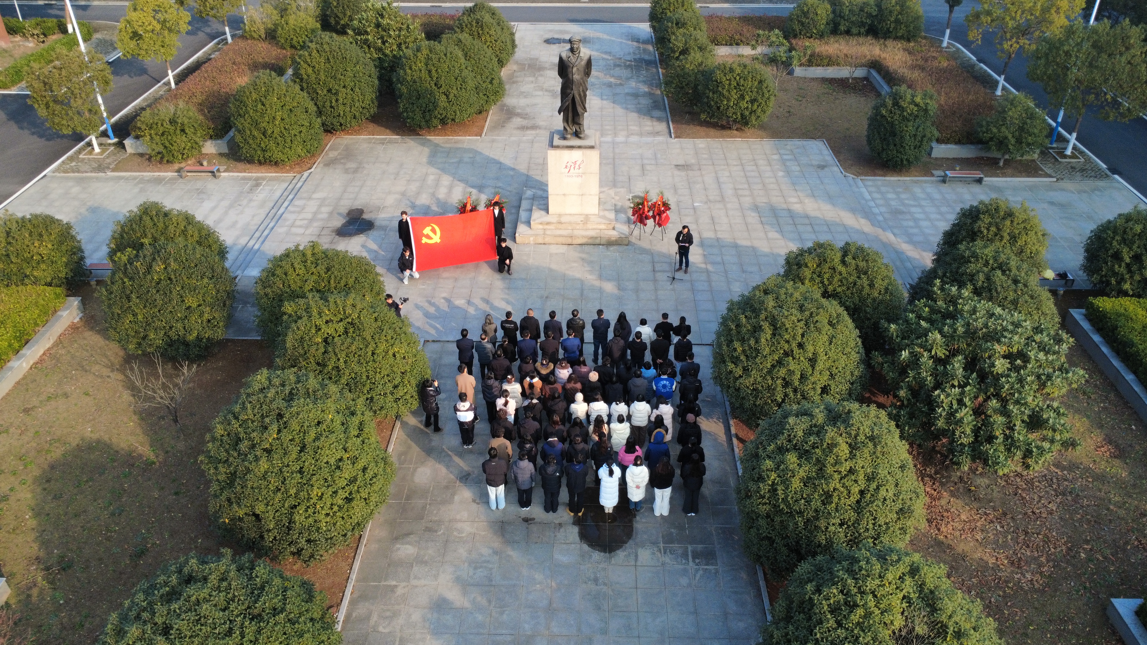为纪念缅怀毛泽东同志诞辰132周年,深情感悟毛泽东同志等老一辈革命家的丰功伟绩和精神风范。12月25日上午,郑蒲港校区在毛泽东塑像广场前隆重举行纪念毛泽东同志诞辰132周年活动,校区管委会主任伍旭坤、副主任陈波、校区直属支部书记王思奇及校区全体教职工、部分学生代表参加活动。活动由王思奇主持。