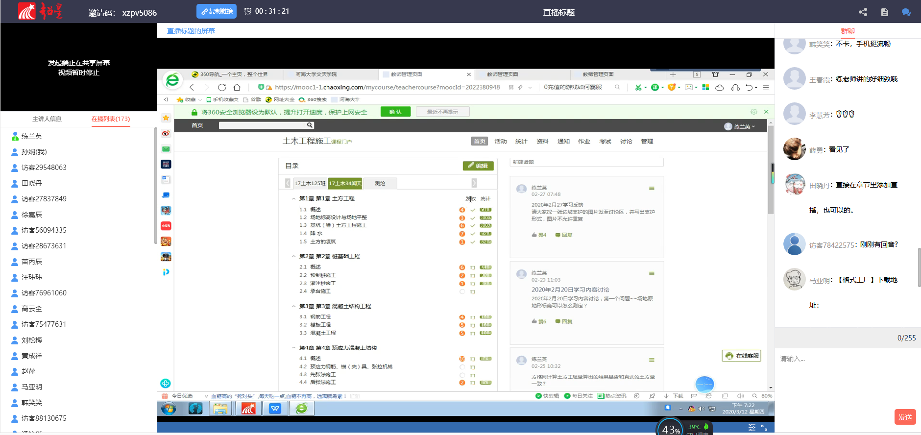 基于对四周线上教学工作总结,为教师提供经验交流的平台,促进广大教师更高效地开展线上教学活动,今年会教务部于3月12日组织展开了线上教学经验分享交流会。交流会邀请了土木工程学院教师练兰英作为代表,通过超星学习通直播平台和全校教师分享她的教学经验。
