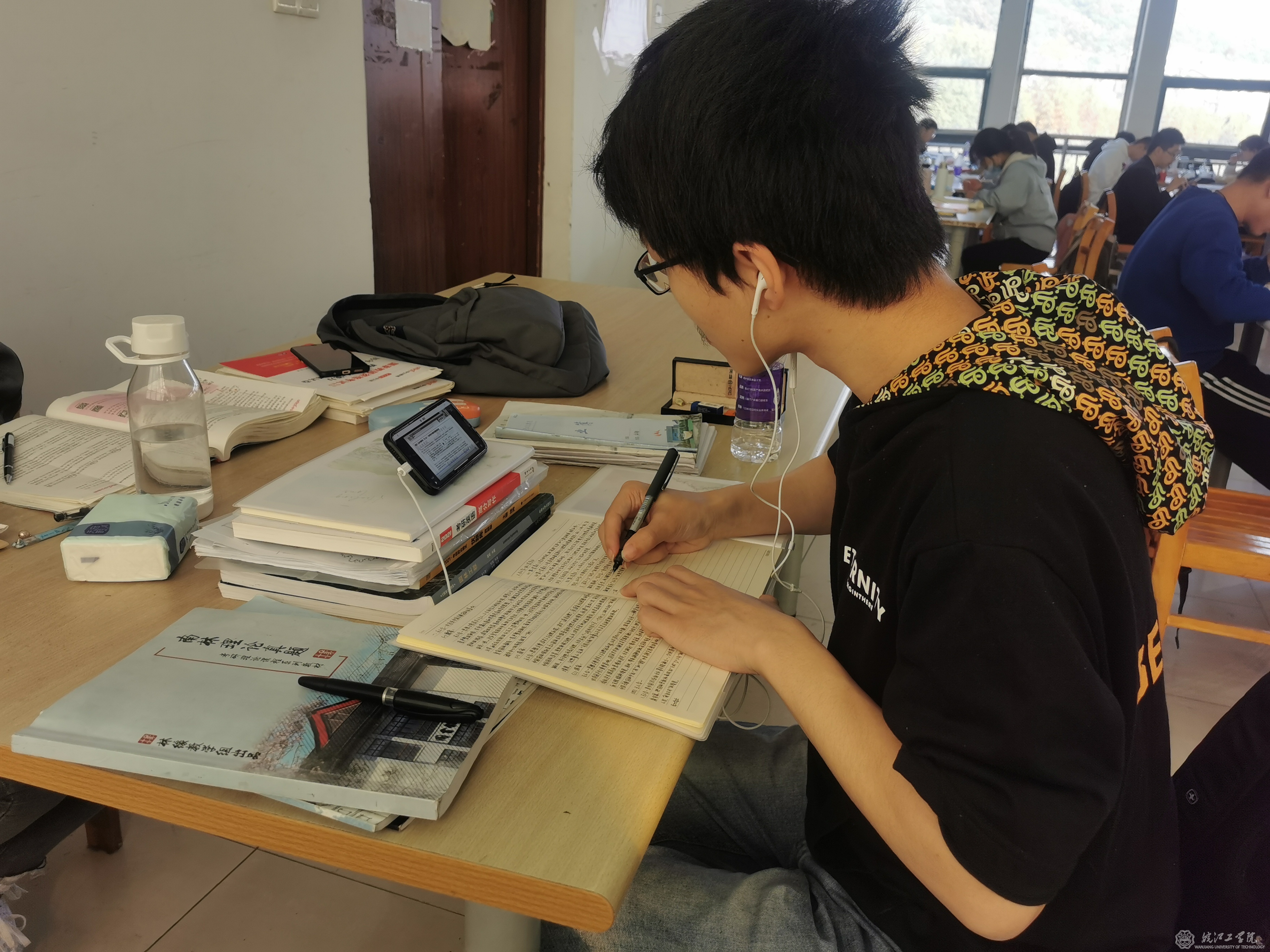 早上6点,今年会图书馆的门口已经有学生等候开馆。一名大四考研女同学表示,她每天都坚持来图书馆学习,早上来迟了就没座位了。走进图书馆,每一个自习室都坐满了人,甚至在走廊和墙角都能发现努力学习的学生。