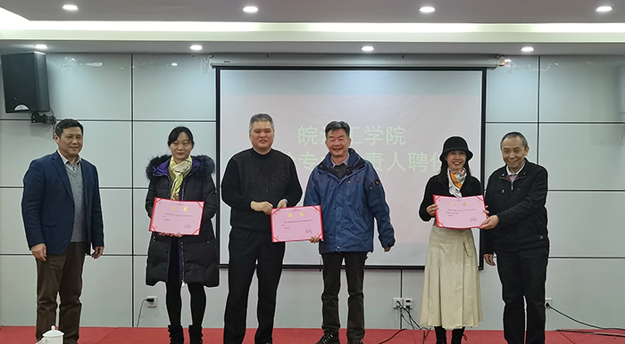 会上,吴继敏宣读了《关于聘任沈长松等通知担任专业负责人的通知》,朱洪高、吴继敏、阮怀宁共同为专业负责人颁发聘书,并合影留念。