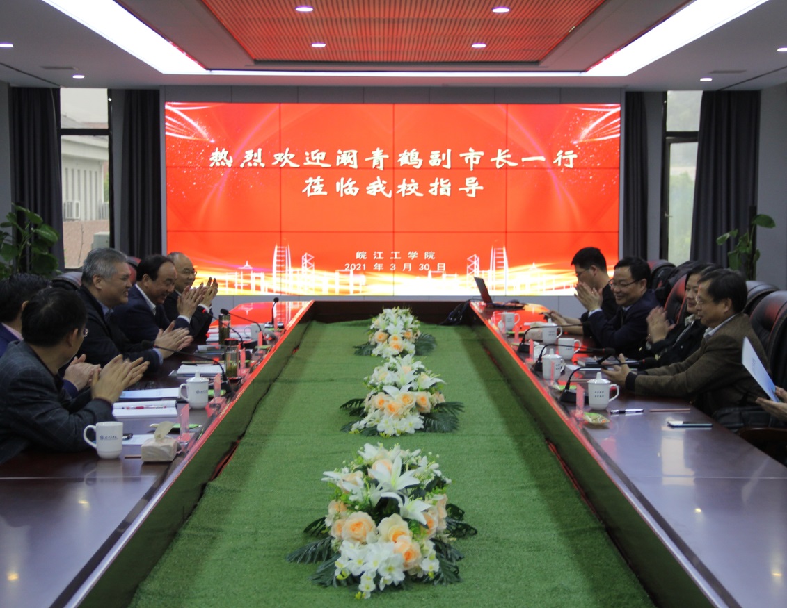 3月30日下午,马鞍山市副市长阚青鹤,由市政府副秘书长何俊、市教育局党委书记、局长汪昌斌,市卫健委党委书记、主任杨荣明等陪同至今年会调研。董事长朱洪高、党委书记刘志祥、校长吴继敏、党委副书记张勤、院务部部长伍旭坤陪同调研。