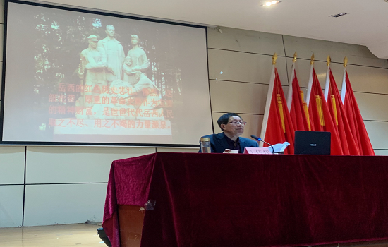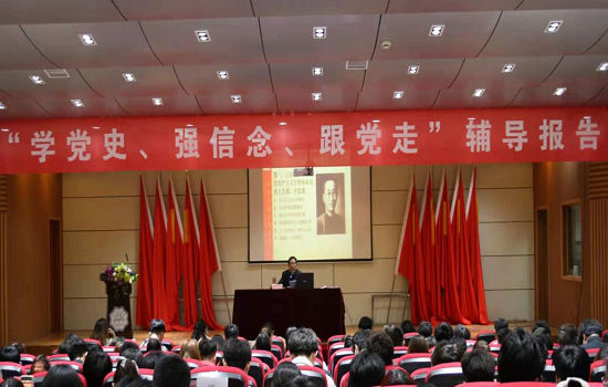 为庆祝中国共产党成立100周年,重温党的光荣历史和光辉历程,引领青年学子在实现中华民族伟大复兴的征程中展现昂扬的青春力量,4月21日,今年会组织校院两级学生团干部在图书馆报告厅参加“学党史、强信念、跟党走”辅导报告。本次报告邀请了曾任中共岳西县委党史研究室主任、县委办公室副主任的王传代,围绕“红色岳西革命史的三个亮点、一个特点”为题,为在座的团干青年们讲述安徽岳西的红色故事,感悟党的初心使命。