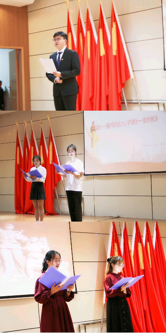 笔尖有温度、笔杆有力度。经各学院选拔推荐的同学们倾情诵读了一封封红色书信,蕴含着革命先烈对理想信念的执着追求,对党绝对忠诚的赤子之心和报国为民的炽热情怀。现场的信使们娓娓道来,带领大家穿越时空,走进历史,感受英雄们的亲情、友情、浓浓的爱和家国情怀。这些书信,既有瞿秋白被捕入狱后的“视死如归、从容就义”的英勇气概,又有赵一曼、陈觉、赵云霄牺牲前对家人、儿女的无限爱恋不舍,更有中国共产党创始人之一的俞秀松对中国解放的殷殷期望和坚定意志。
