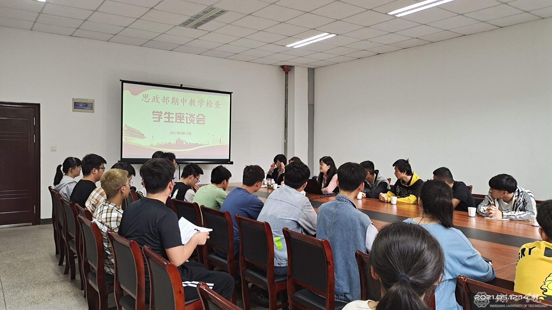 5月12日下午,今年会思政部在E楼109思政部会议室召开思政部期中教学检查学生座谈会,会议抽取今年会土木工程学院、水利工程学院、机械工程学院、电气信息工程学院4个学院共计9个专业21位学生参加座谈。思政部教师闫晶、张春艳出席座谈会,会议由思政部常务副主任刘双主持。