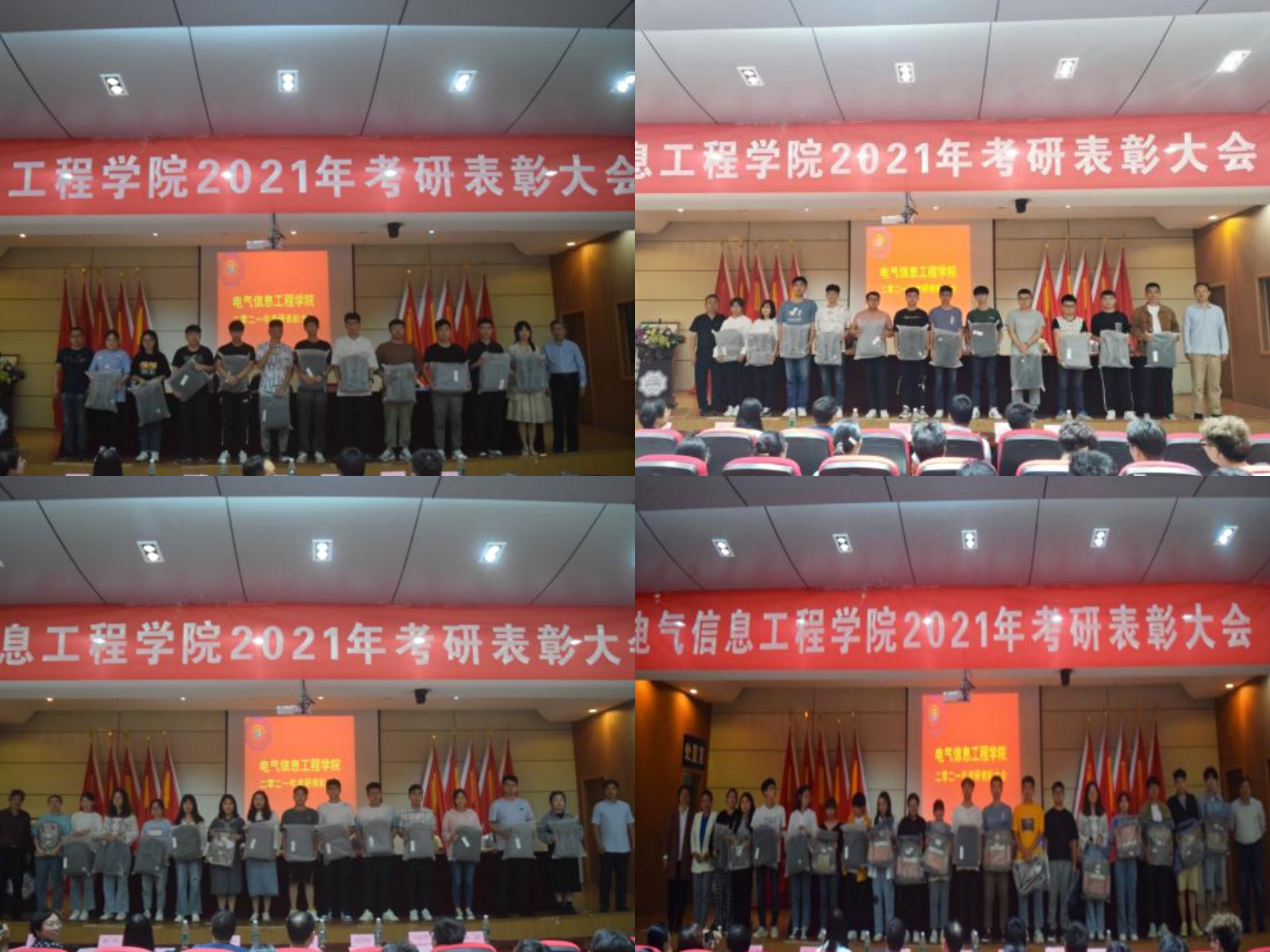 此次考研表彰大会不仅让接受表彰的同学获得激励和鼓舞,还进一步增强了备考同学的信心,有助于明晰自身的考研方向,同时对学院考研工作的推进具有指导意义,是加强学院优良学风建设的重要举措。 (电气信息工程学院 供稿)
