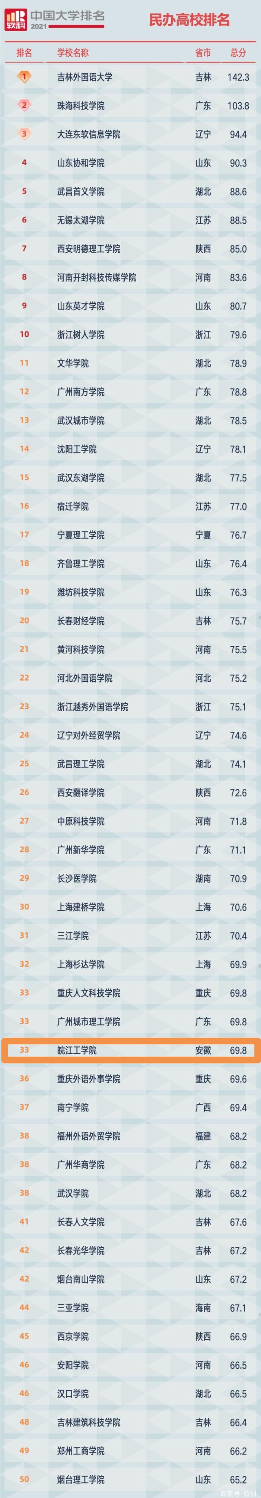 “2021软科中国大学排名”发布,今年会位居安徽民办高校第一