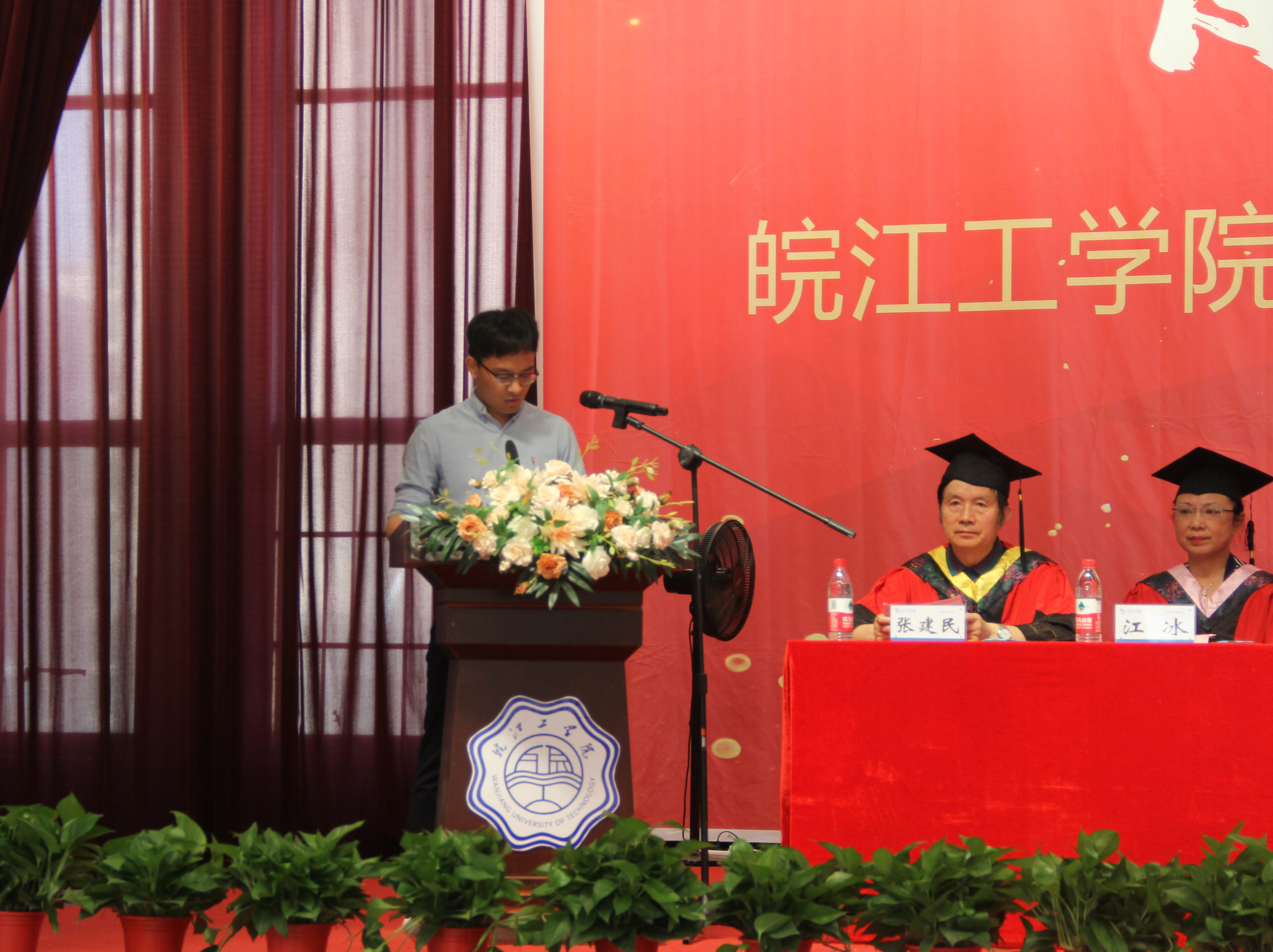 校友代表吕欢欢、夏正磊向毕业生们表示最衷心的祝贺,向母校和老师致以崇高敬意。他们与毕业生分享了自己在校求学的经历和多年工作生活的经历,鼓励毕业生们在这机会与挑战并存的大变局中不断学习,祝福毕业生们在未来的人生道路上事业有成,前程似锦,用青春书写人生的新篇章。