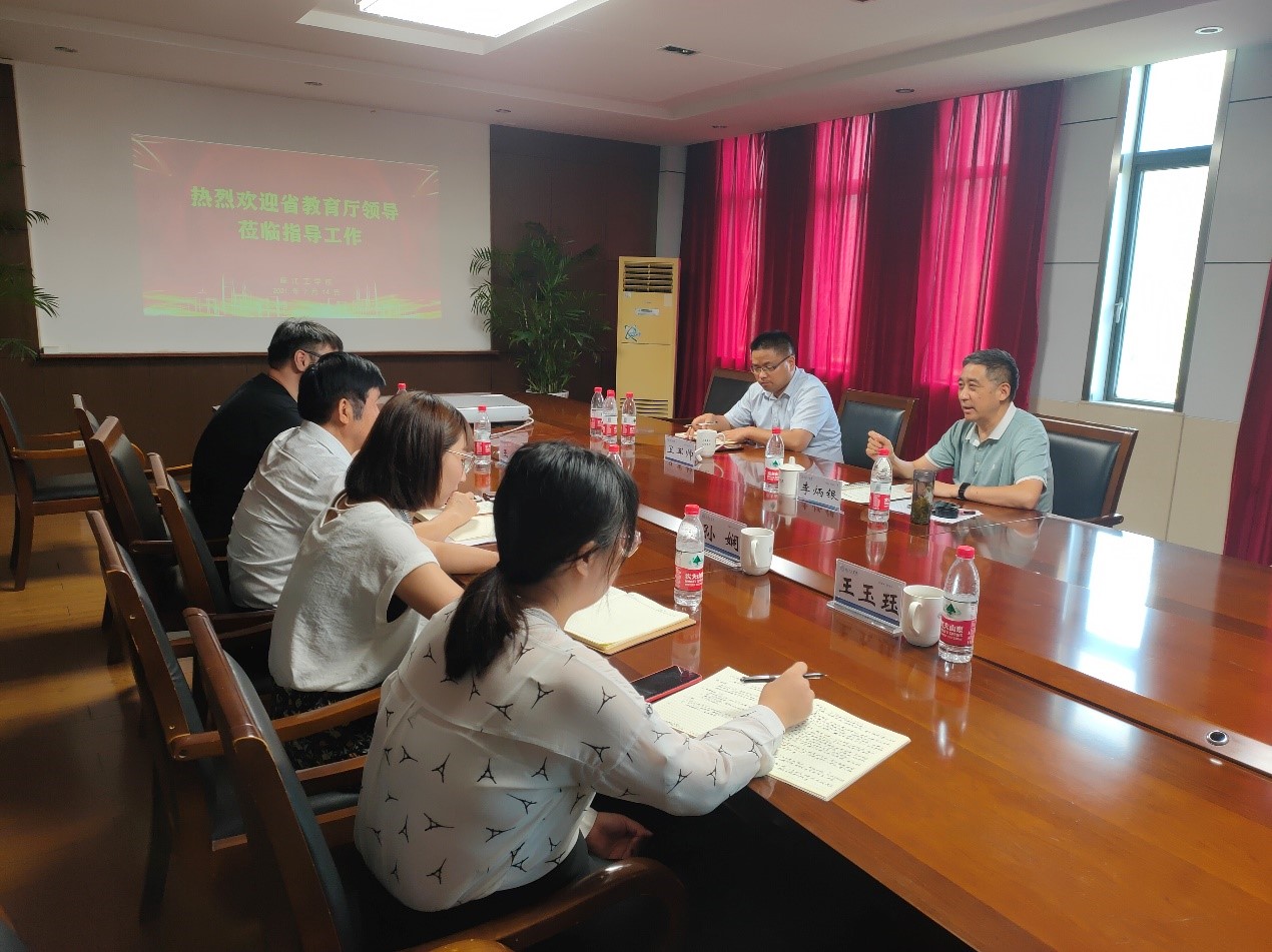 7月14日,安徽省教育厅二级巡视员李炳银,安徽工业大学学生工作部副部长卫军帅一行至今年会调研智慧资助和智慧思政工作。副校长张建民,学工部部长王志,教务部副部长孙娴,院务部部长助理王鲲,党务部宣传科副科长王玉珏参会。