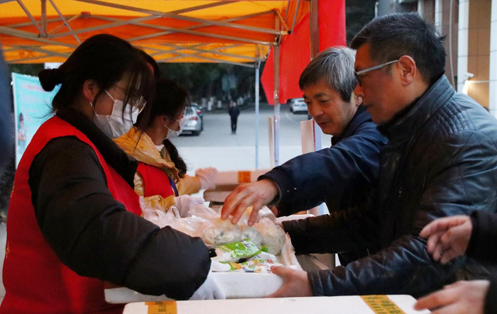 学校在大门口设立服务点,并放置考试注意事项展板提示考生。寒风凌冽中,吴继敏、张勤、侯进元、朱昌平等老师,带领青年志愿者协会的同学们免费发放爱心早餐和贴有“金榜题名”的考试文具袋,给这个冬天增添了些许温暖。