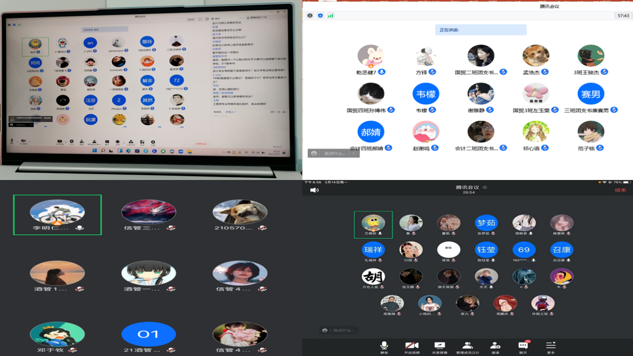 认真做好疫情期间学生思政教育工作,掌握学生思想动态,通过线上线下平台讲好抗“疫”思政课,充分发挥网络育人新阵地。各专业辅导员老师积极召开疫情防控主题班会、班委会等,解读近期各级防疫政策、防控形势和学校封闭式管理阶段的具体要求,教育引导学生保持良好心态,坚定信心。重点对学生接下来的学习和生活方面开展了教育引导,鼓励同学们要一方面坚守各项防疫举措,另一方面要合理规划个人的学习和生活。