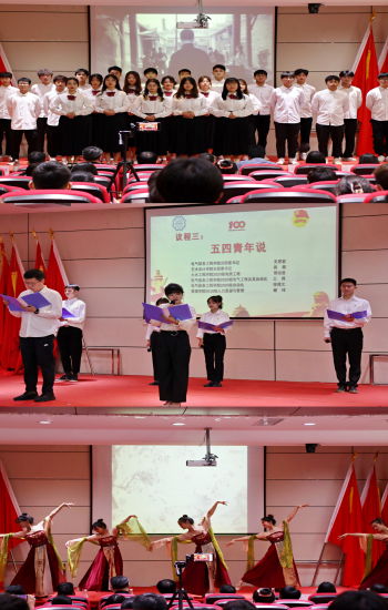 活动过程中,校大学生艺术团合唱团一曲《一起向未来》,以坚定洪亮的歌声表达众志成城、携手同行、勇闯未来的决心。青年教师及学生代表共同带来了精彩的“五四青年说”,一句句充满力量的朗诵词展现了今年会青年朝气蓬蓬、奋发进取、勇于担当、甘于奉献的精神风貌。校大学生艺术团舞蹈团以优美的舞姿、传神的演出演绎了舞蹈《忆长安》,带领我们梦回盛唐,感受万邦来朝的繁荣盛况,激励我们为实现中华民族伟大复兴的中国梦而奋发努力。