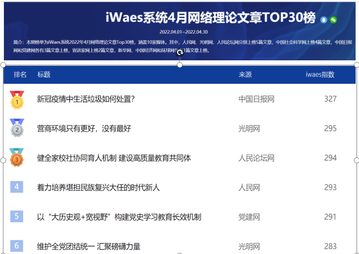 今年会教师理论文章入选全国网络理论文章TOP30排行榜第三名