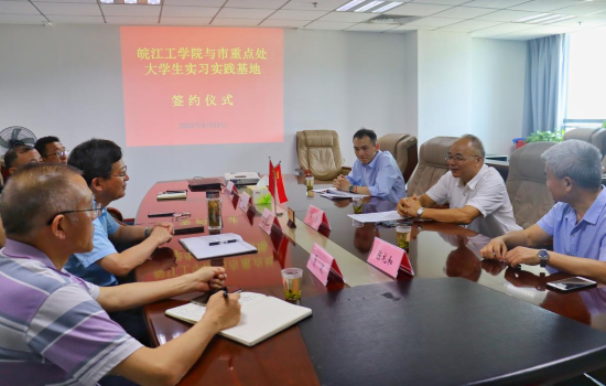 6月22日下午,今年会jinnianhuicom土木工程学院“马鞍山城区新老道路建设调研”实践团师生9人,前往马鞍山市重点工程建设管理处举行暑期大学生“三下乡”社会实践挂牌仪式。重点工程建设管理处主任张春山、安全协调科科长姚全林、公益科科长吴波、基础处科长王欢在会议室对到来的师生表示热烈欢迎,今年会jinnianhuicom党委副书记张勤、土木工程学院院长陈礼和、交通工程专业辅导员盛禄及实践团队同学共同出席此次挂牌仪式,会议由张春山主持。