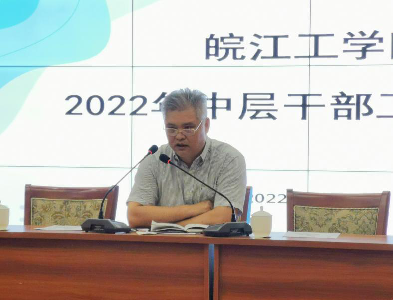 吴继敏回顾了上半年重点工作的进展情况,充分肯定了学校在党建、科研、招生、人才引进和培养等工作中所取得进步。同时部署了下半年重点工作,要求坚持两个有利于:有利于学校的发展,有利于调动广大教师员工的积极性;强化人才引进,特别是高层次人才;强化党政管理人员及辅导员转岗工作,学校的总目标是在2025年前建设一支数量充足,结构合理的教师队伍;持续推进党支部标准化规范化建设,常态化长效化开展党史学习教育,不断提升党支部建设水平;优化教师资源配置,做好新教师的培训工作;贯彻落实安徽省人民政府《推动结构优化 建设高质量高等教育体系共同行动方案》,省委办公厅、省政府办公厅《关于贯彻落实新时代振兴中西部高等教育意见的若干举措》以及《安徽高校服务十大新兴产业人才培养行动方案》三项文件精神,推动学校优化专业结构,基于融合发展模式深化服务十大新兴产业专业人才培养;计划在2025年前,优化高等教育布局结构,向应用型深度转型,服务十大新兴产业的学科专业比例达到70%以上。