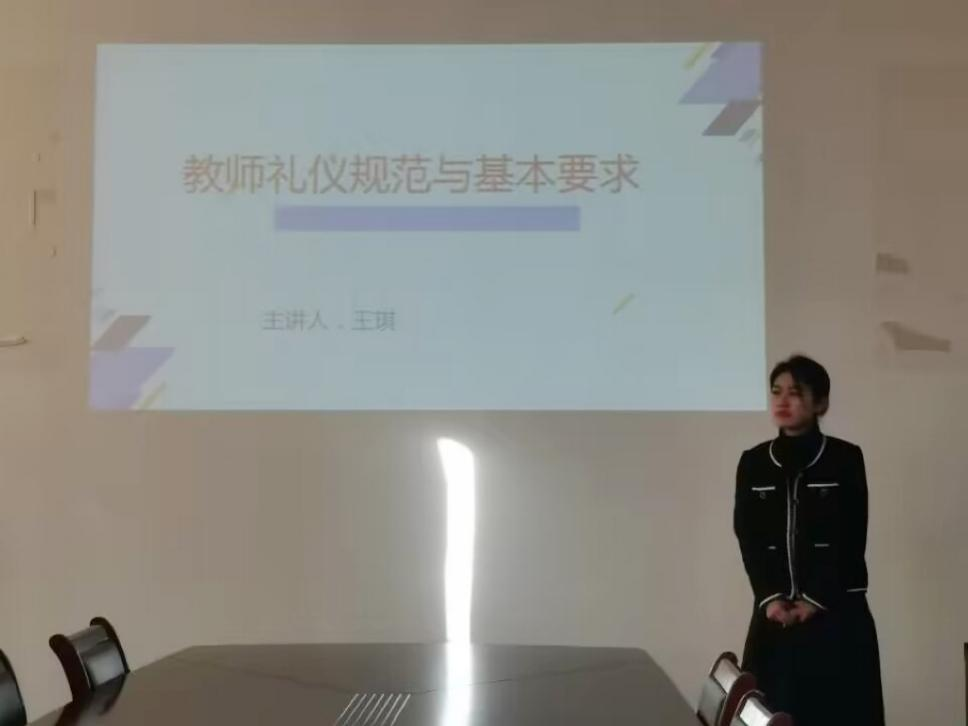 讲座中,王琪站在专业的视角并通过专业知识与大家分享教师礼仪规范知识。她从教师礼仪的内涵、重要性、基本要求及教师社交礼仪这四个方面展开讲解。她讲到,礼仪不仅成为一个国家、一个民族文明开化程度的重要标志,也成为国民素质高低的具体表现,而教师礼仪不是一般的礼貌,而是一种职业修养和职业素质,是在教育教学工作中必须掌握并娴熟运用的人际关系传播技能。她结合教师的职业特点,运用鲜活的案例、丰富的图片,从教师语言、教师服饰、教师形象、教师举止、教师情绪等专业角度进行了生动形象的讲解。同时又分别从男教师着装形象要求、女教师着装形象要求角度进行了讲述。整场讲座内容丰富,知识性和趣味性融合,互动性和活泼性统一。教师们纷纷表示收获颇多,对教师礼仪有了全新的认识,要学以致用,注意日常教师礼仪和行为,更好地展现新时代思政课教师形象。