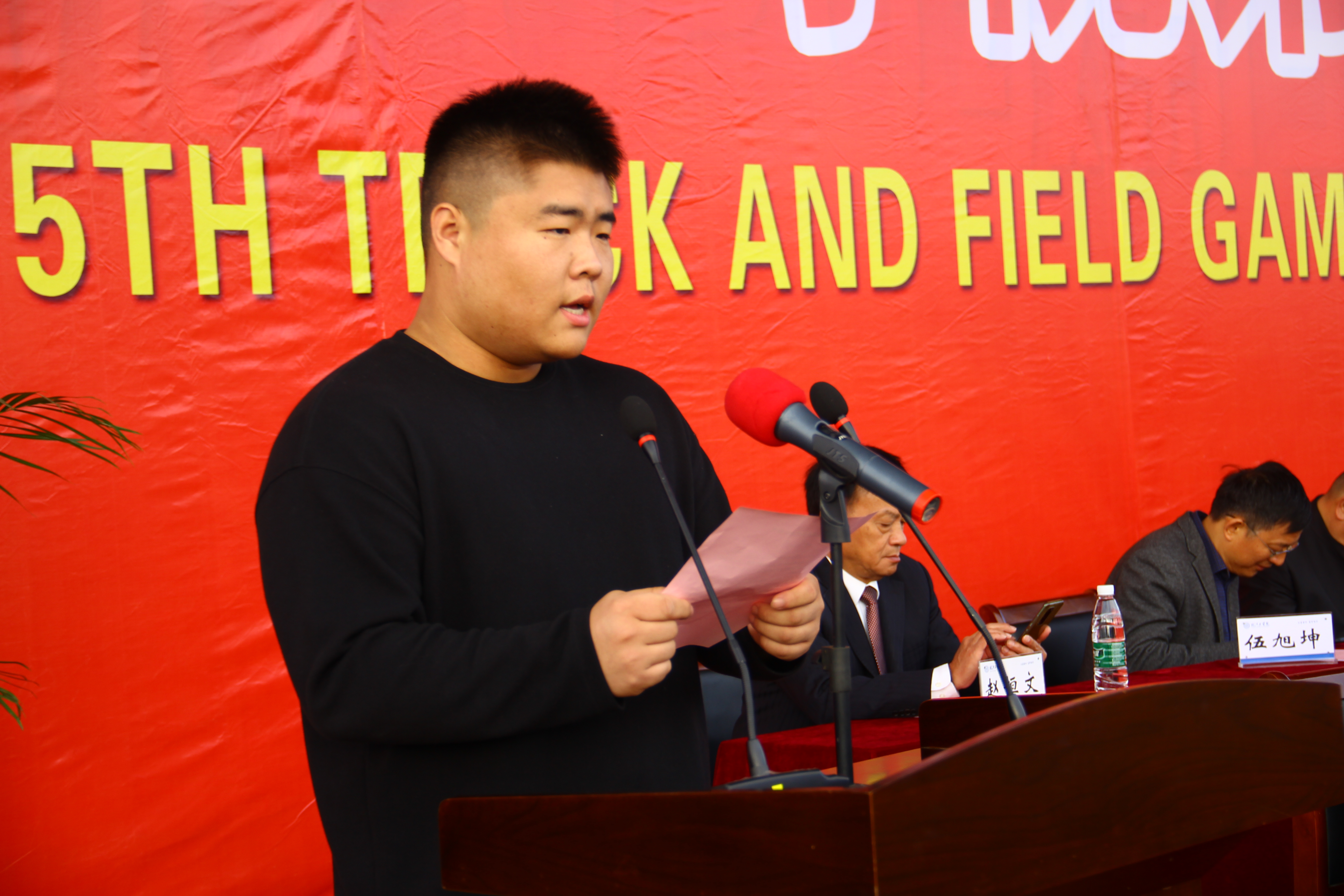 裁判员代表王世辰老师、运动员学生代表周伟分别宣誓,他们表示要以高昂的心态面对此届运动会,严格遵守比赛规程,秉持公平公正公开的原则,坚持友谊第一,比赛第二,以公平、友好的态度进行比赛。