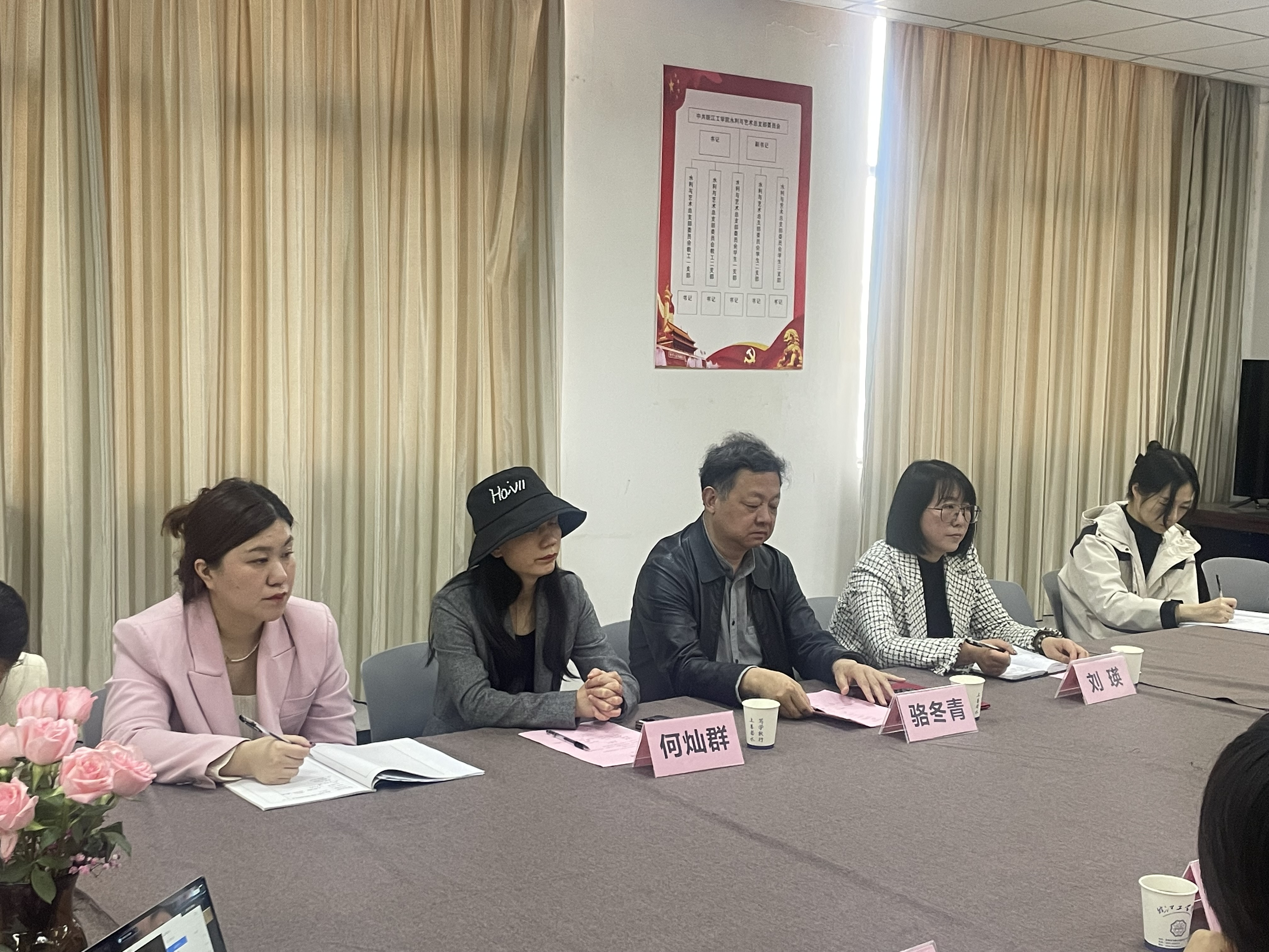 2023年3月10日下午,艺术设计学院专业负责人与教师见面交流会于东教303会议室召开。产品设计专业负责人何灿群、数字媒体艺术专业负责人骆冬青、环境设计专业负责人刘瑛、艺术设计学院院长伍旭坤、党总支书记张亚梅、副院长金花、党总支副书记程楠楠、各专业教研室主任、教师以及辅导员参加了本次见面交流会。会议由院长伍旭坤主持。