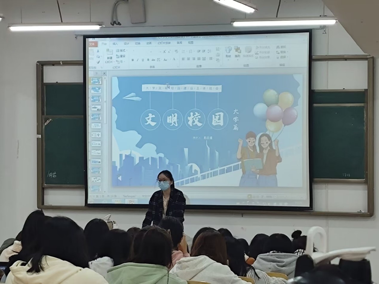 本次主题班会强调了宿舍文明、课堂文明、恋爱文明、语言文明等校园基本文明礼仪规范。同时辅导员老师鼓励学生发表观点,进行自我反省与批评,使学生对校园文明规范有更深刻的了解,加强了班与班同学的友谊与整体凝聚力,有效地达到教育目标。