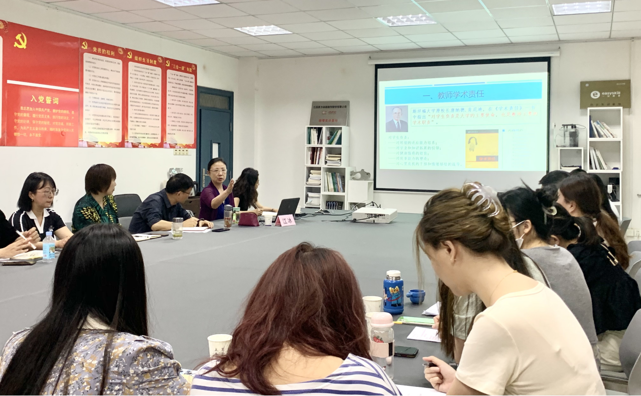 江冰教授以“四象限同屏共振”的形式,回顾了其职业生涯40年,即教师本职工作、行政管理工作、社会工作及业余生活等方面,娓娓道来,乐在其中。其中重点讲解了教师的职业角色、教学规范、课堂教学、实践教学、研究型教学、教学科研以及教学反思的内容和方法。她指出,对学生负责是大学的主要使命,也是教师的主要学术职责。同时,她也强调,教师之间教学水平的差距,很大程度上在于是否进行“反思性教学”。课堂教学是教师工作的主战场,要想上好一门课,教师是需要动脑筋的,充分备课是基础,同时也要注意自身的形象。最后,江教授也对社会工作和业余生活发表了个人感悟,她表示,遇到困难或不解时,要转换思维和态度,就会豁然开朗。生活也是需要“设计”的,努力工作与品质生活并不矛盾。