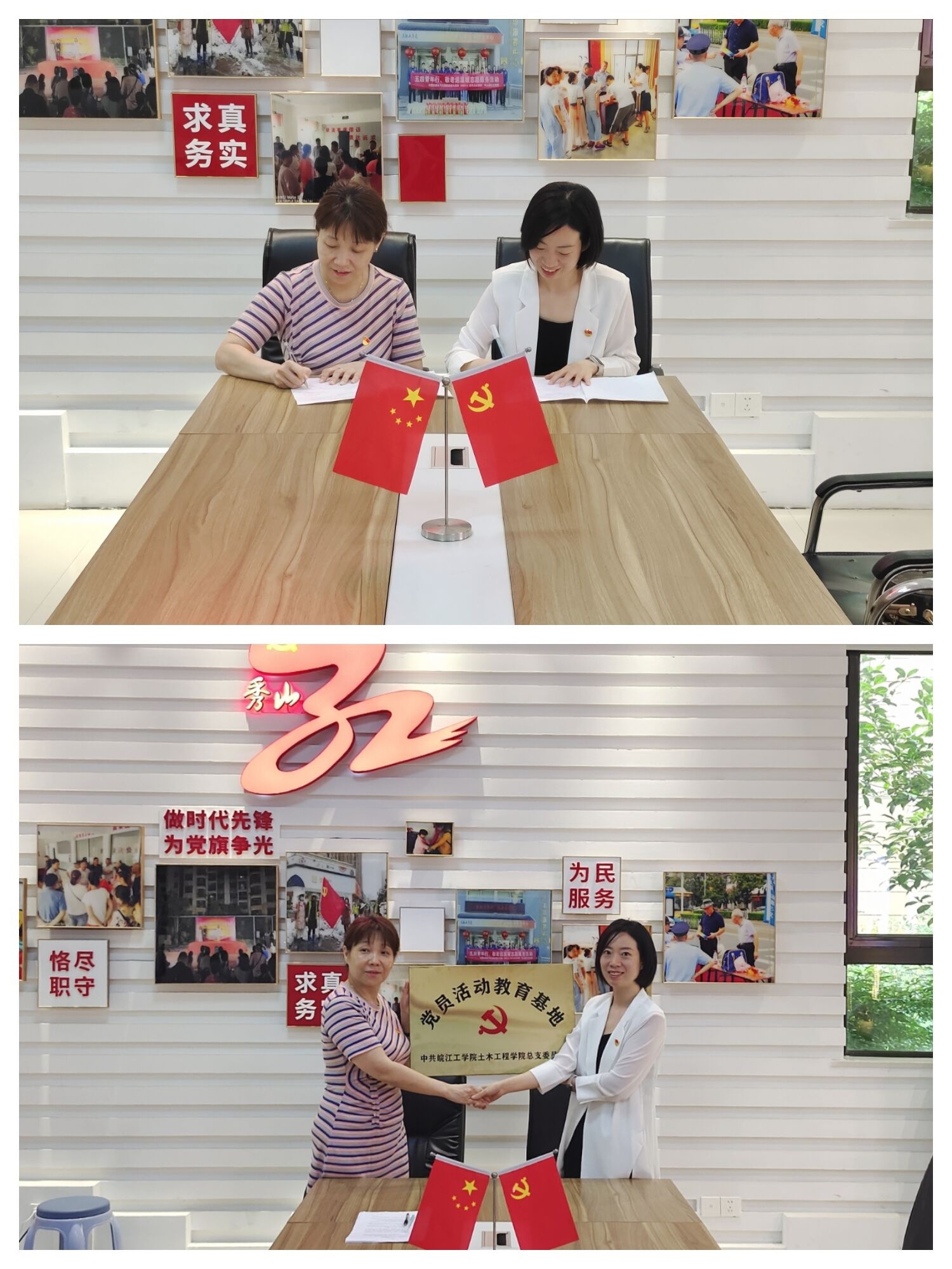 为进一步提高基层党组织的战斗力、凝聚力,发挥基层党建共建优势,着力构建“资源融合、优势互补、共建共享”的党建共同体。2023年7月4日上午,土木工程学院党总支与马鞍山市花山区霍里街道秀山湖社区党委举行结对共建签约授牌仪式。党总支书记王瑜,学生支部书记李珍珍、鹿青、丁爱华、王露仪,部分学生党员代表参加了共建仪式。霍里街道秀山湖社区党委书记对学院一行的到来表示欢迎。