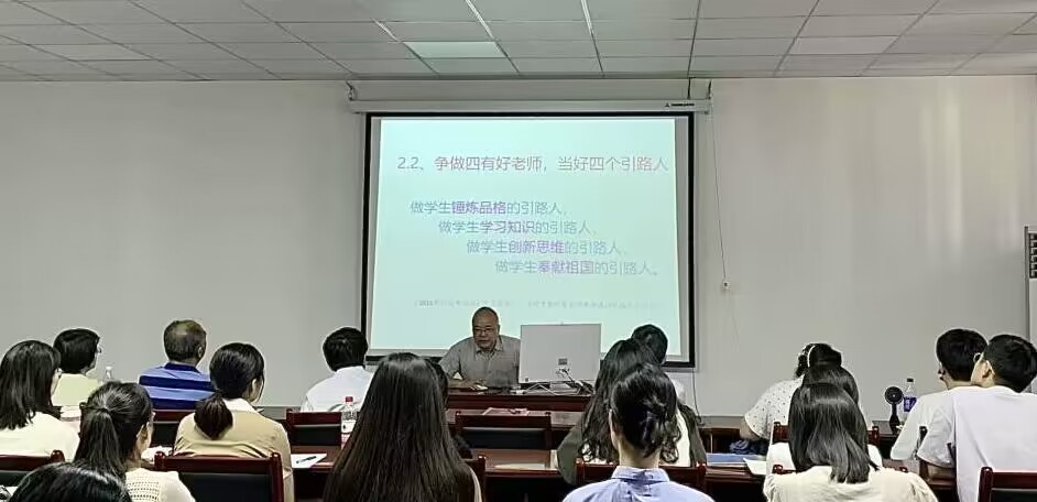 张勤为学院全体教师分享了如何做一个学生信赖的四有好老师。他从为什么要做一个好老师、怎样的老师才是好老师以及怎样做一个好老师这三个方面给教师们带来了非常有启发和帮助的见解。他指出,做一个好老师不仅是历史的责任和时代的重任,更是学生的幸运、学校的光荣和民族的希望。