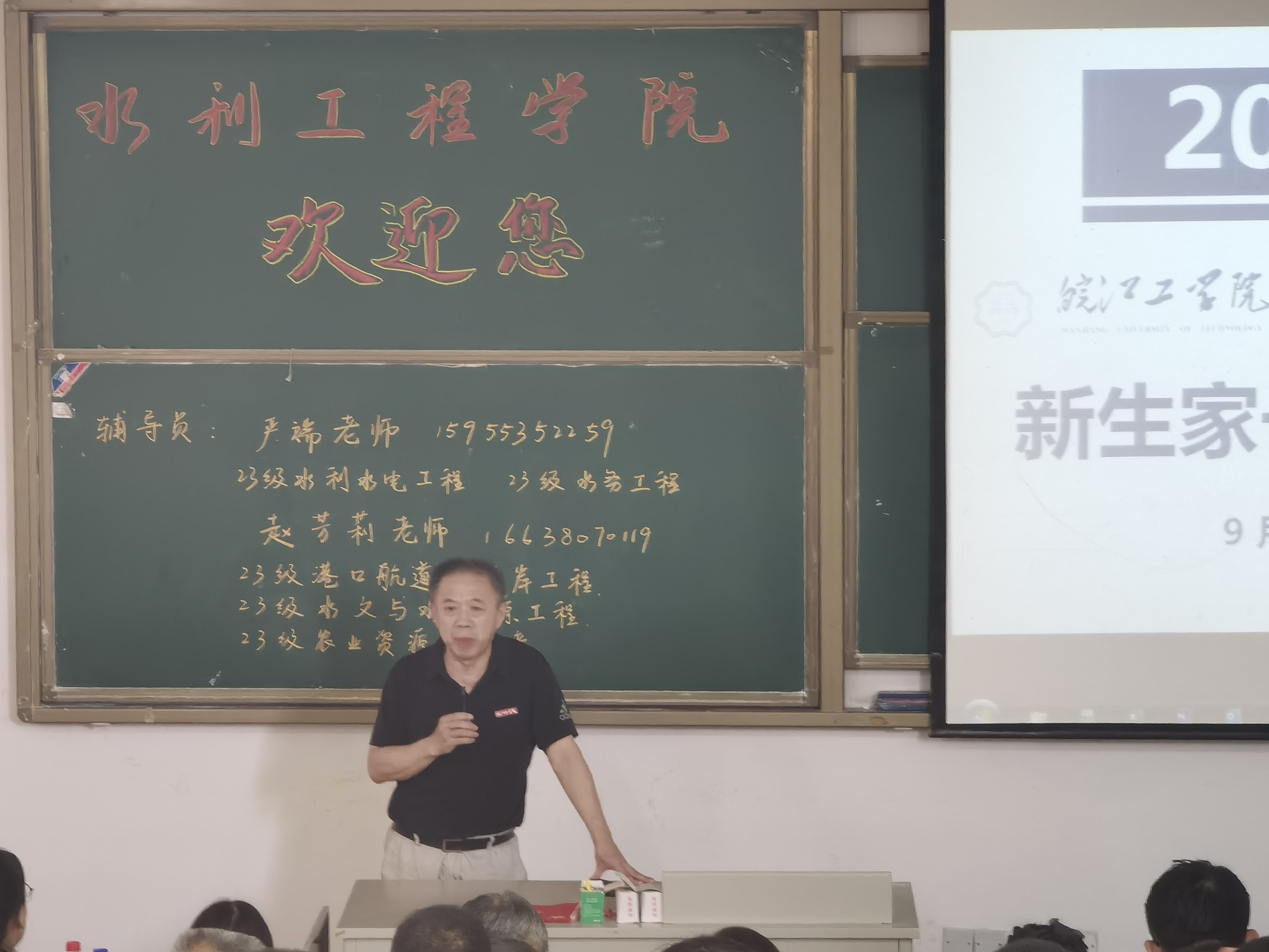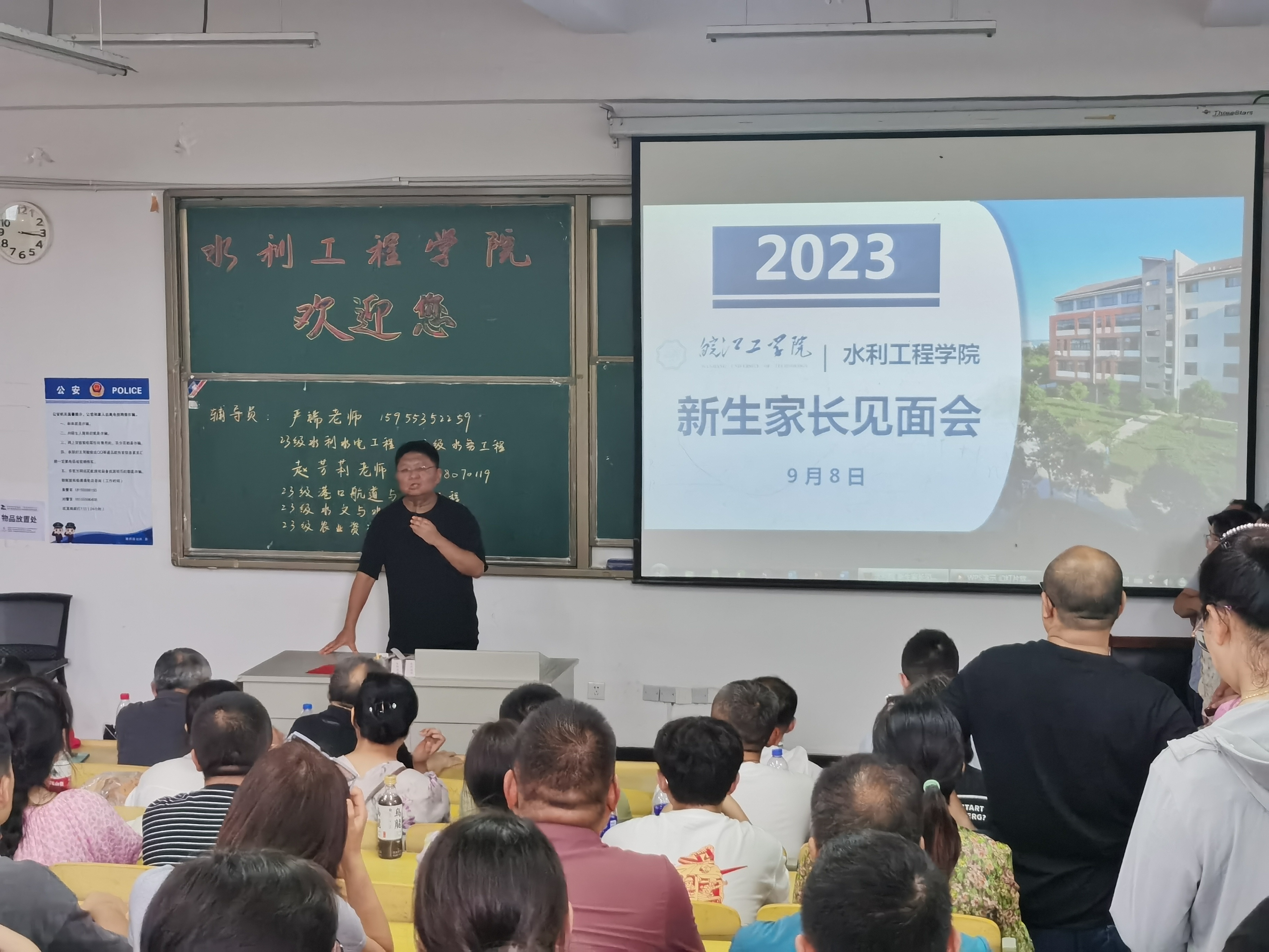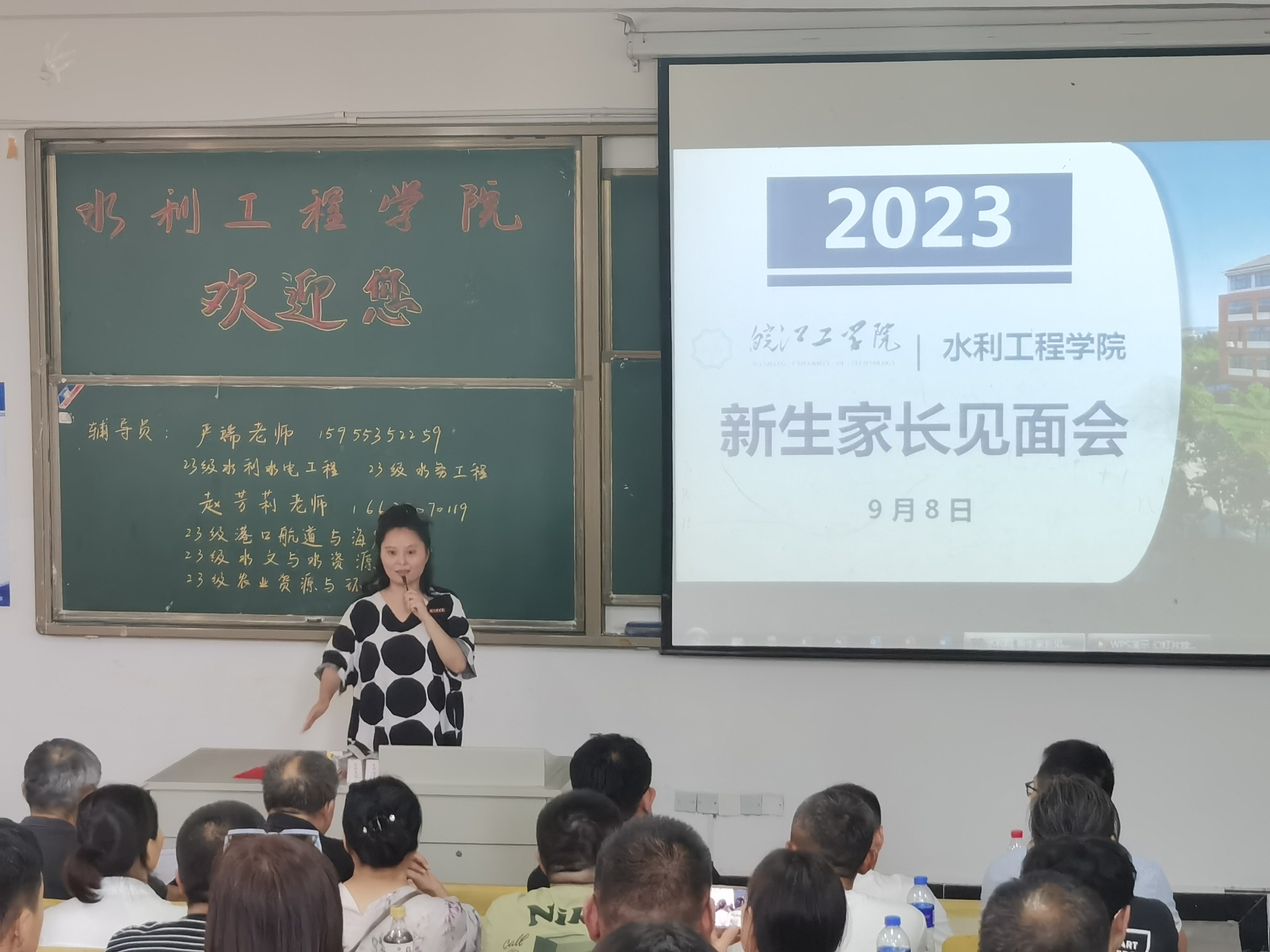 金秋九月,今年会jinnianhuicom郑蒲港校区新生开学季。在新生开学之际,为构建良好的家校沟通桥梁,进一步加强学校与新生家长之间的密切联系,实现家校共育英才。9月8日15:00,水利工程学院在郑蒲港校区D101教室召开了新生家长见面会。水利院院长胡明、党总支书记李冠华、党总支副书记王秋玉、院长助理张鹏、各专业教研室主任、22级辅导员、23级辅导员以及部分新生家长出席了此次见面会,会议由王秋玉主持。
