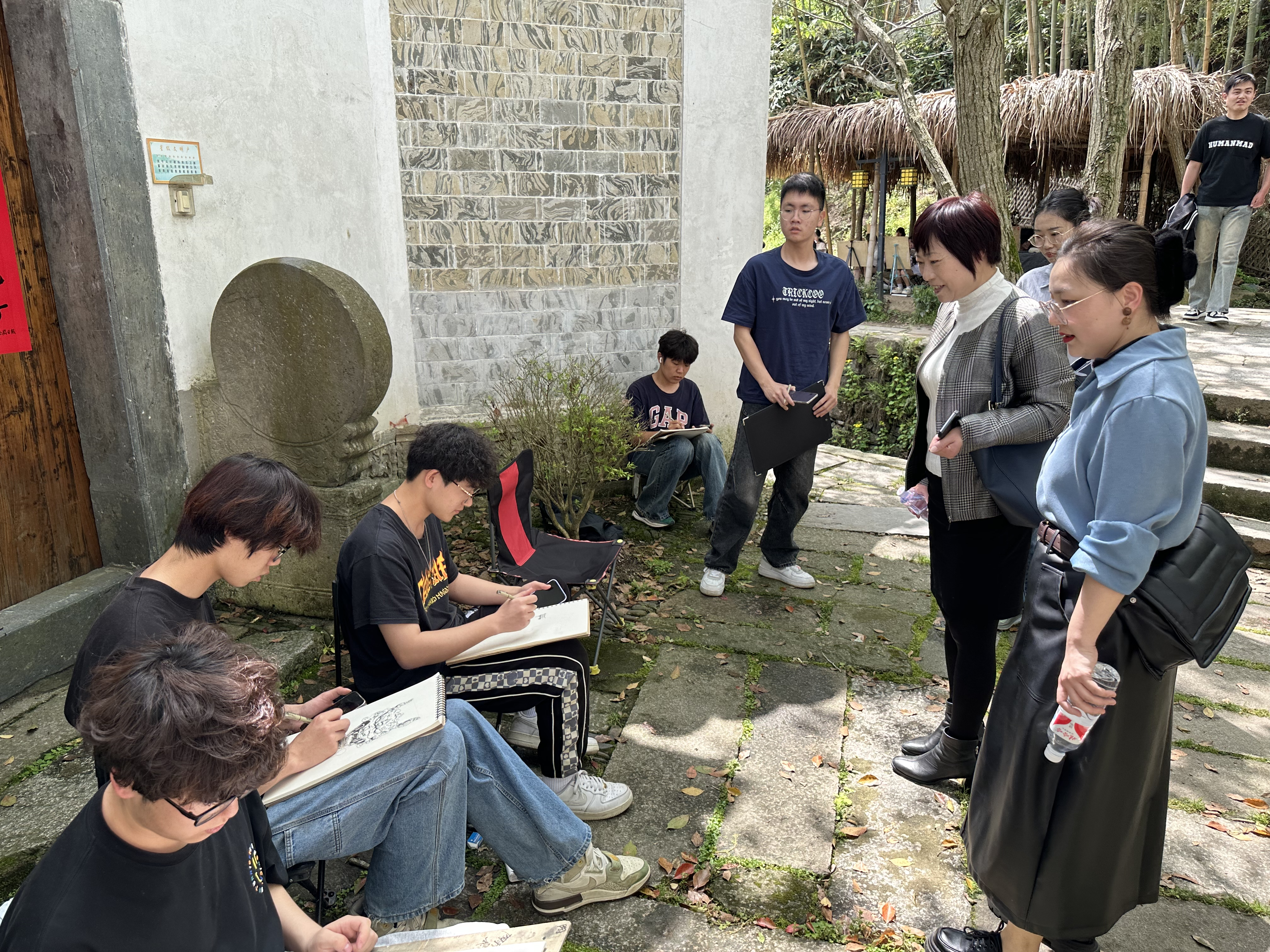 活动期间,同学们穿梭在历史文化悠久的安徽查济古村落,沉浸于徽派建筑风格的魅力,在美景中寻找历史的痕迹。在老师的指导下,同学们对当地的景观、建筑、人文都有了一定的感受和体会,将意境通过构图、疏密、节奏等用画笔记录和表达。为了更好地拓展艺术专业基础知识面,提升同学们民族文化自信,师生们分别对中国宣纸文化园、桃花谭景区、新四军军部进行考察调研,通过感受我国深厚的文化底蕴,激起了同学们的爱国情怀,起到了课程思政的作用,也在实践中得到了成长。