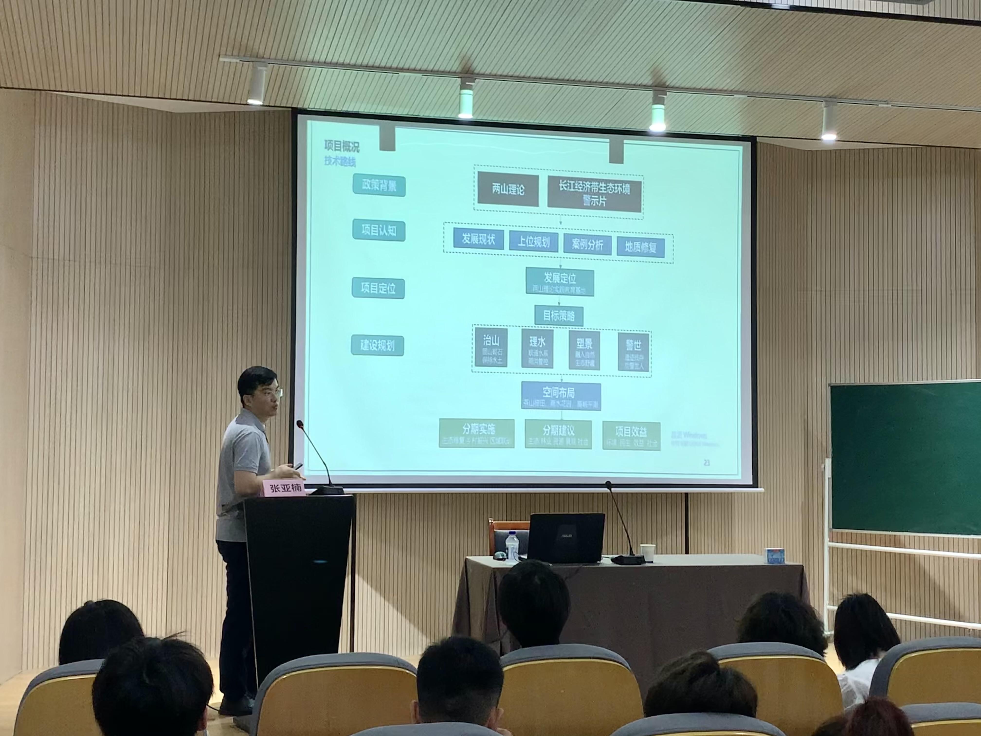 2024年5月18日上午10点,于洪雅楼105报告厅,一场以“书写两山答卷,引领绿色发展”为主题的矿山生态治理案例分享学术讲座在此隆重举行,本次讲座由南京市园林规划设计院张亚楠所长主讲。参加本次学术讲座的有教学副院长金花老师、环境设计专任教师、21级和22级环境设计学生,讲座由金花院长主持。