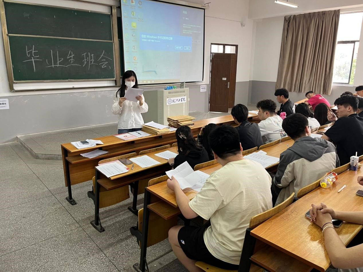 围绕理想信念、心怀感恩、安全和谐三个话题,辅导员对毕业班学生做出了期许,希望同学们做好国家助学贷款毕业确认工作,认真承担借款人应尽的责任和义务;希望同学们注意环境卫生、用电安全等事宜,文明离校、安全出行;希望同学们心怀感恩、胸怀抱负,为母校留下一份情谊、一份平安,尽到一份责任,展示一份文明,满载着收获和理想踏上人生征程。