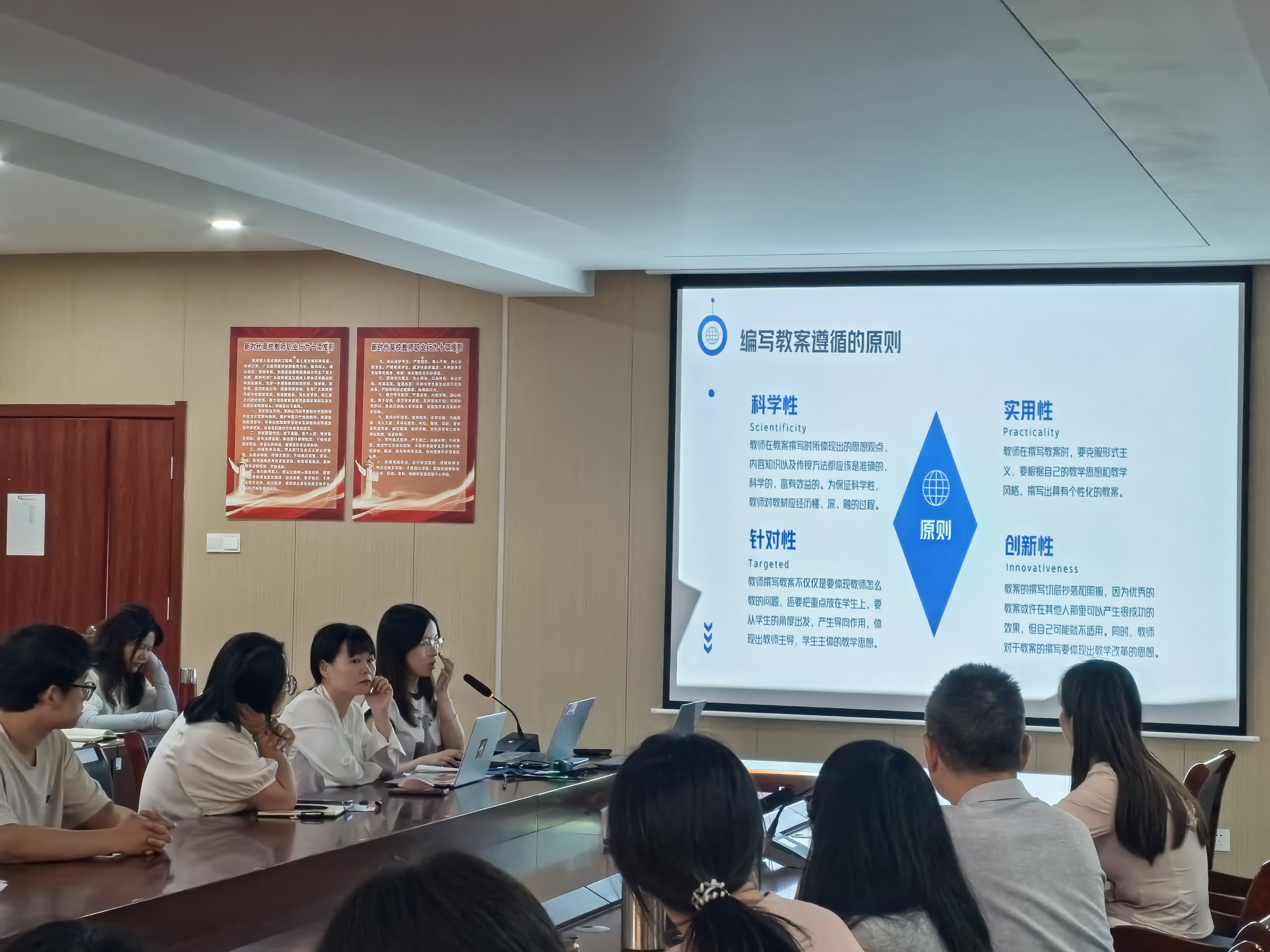 紧接着,2023年教学技能大赛教案设计赛道一等奖获得者、工程结构教研室教师朱瑾针对教案撰写进行了深入的讲解。她首先阐述了教案撰写的原则和形式,随后以自己的教案为例,详细剖析了教案各模块的撰写技巧。她的分享不仅为教师们提供了实用的教案撰写指导,也为新教师快速掌握教案编写方法提供了有力帮助。