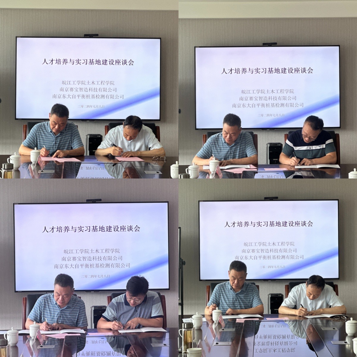 随后,学院与三家企业分别签订了人才培养与就业基地建设合作协议,并与南京赛宝智造科技有限公司签订了实习基地协议。
