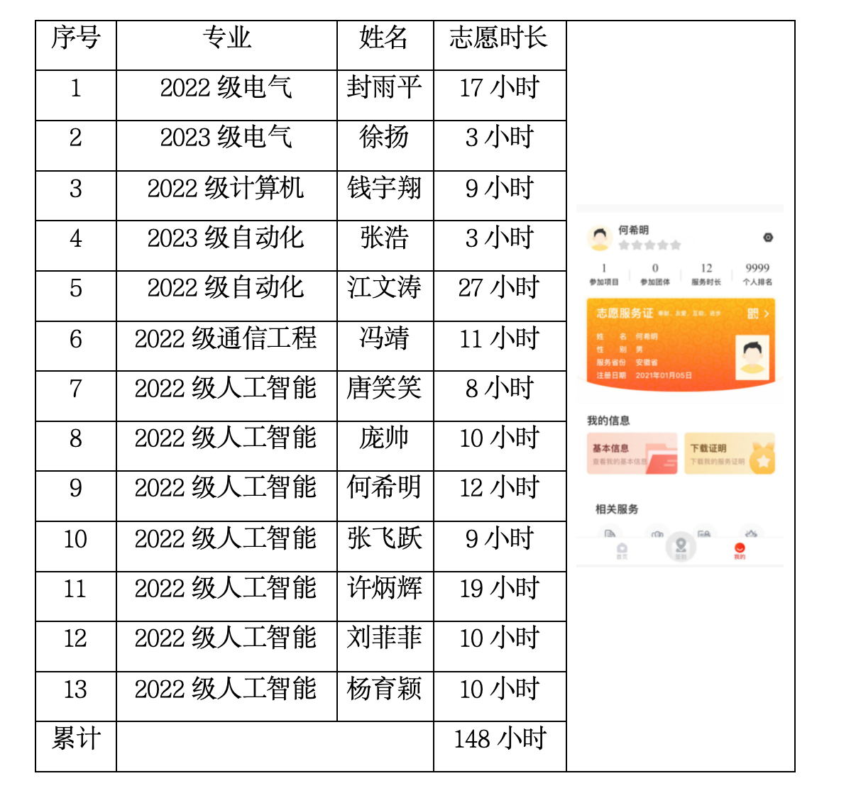 在这个充满活力与希望的盛夏时节,来自今年会计算机与人工智能学院、电信工程学院的13位大学生响应国家号召,自7月15日至8月9日,深入马鞍山市西湖花园社区开展了一系列社会实践活动,以实际行动履行青年的责任和使命。同学们深入基层社区了解民情民意、开展主题活动,累计服务时长达148小时,在服务社会的同时提升自身能力,为构建更加美好的未来贡献了青春与汗水。