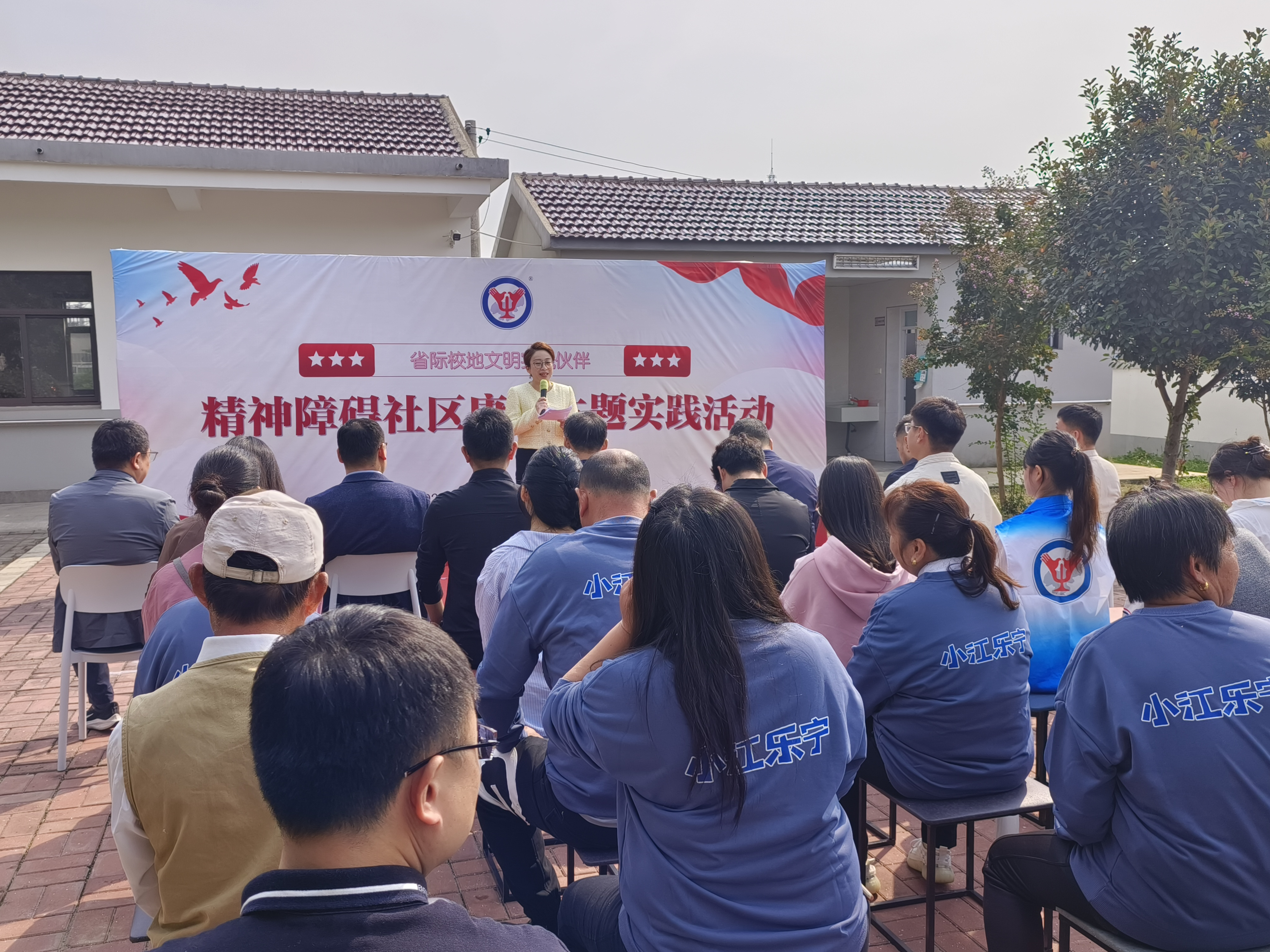 为迎接第三十三个“世界精神卫生日”,推动精神障碍社区康复服务发展,10月10日上午,管理学院由党总支副书记冯康带队,分团委书记李明仁、健康服务与管理专业教师王红磊以及五名志愿者代表同学共同参与,在南京市江宁区江宁街道小江乐宁®康复驿站参加“省际校地专业性志愿服务合作联盟”启动仪式。